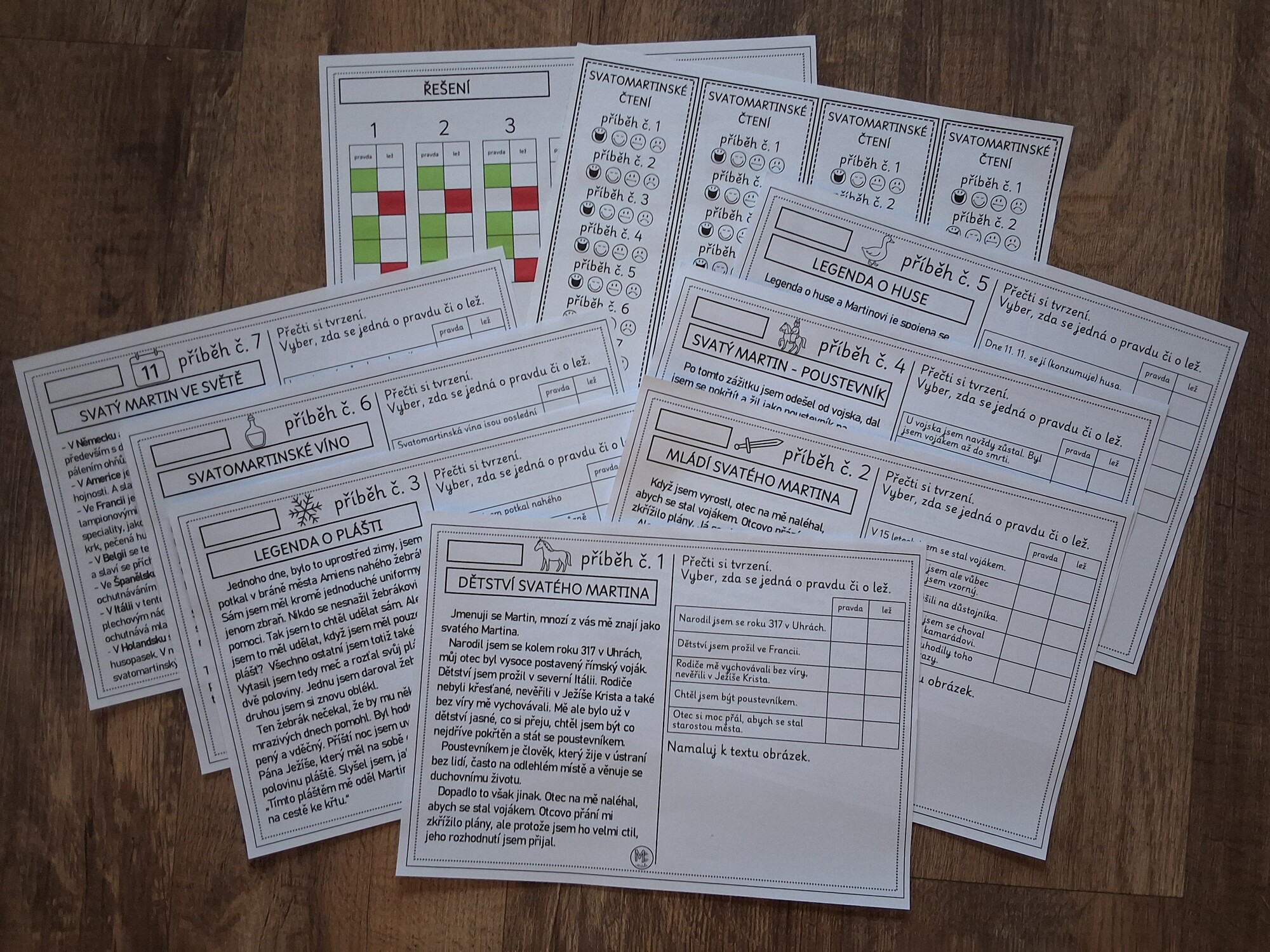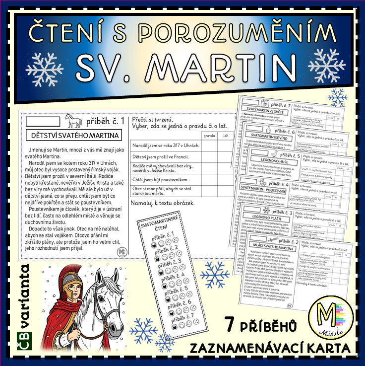Materiál „Čtení s porozuměním – sv. Martin“ je komplexní výukový soubor, který propojuje čtenářskou gramotnost, porozumění textu a poznávání tradic s legendami o svatém Martinovi.