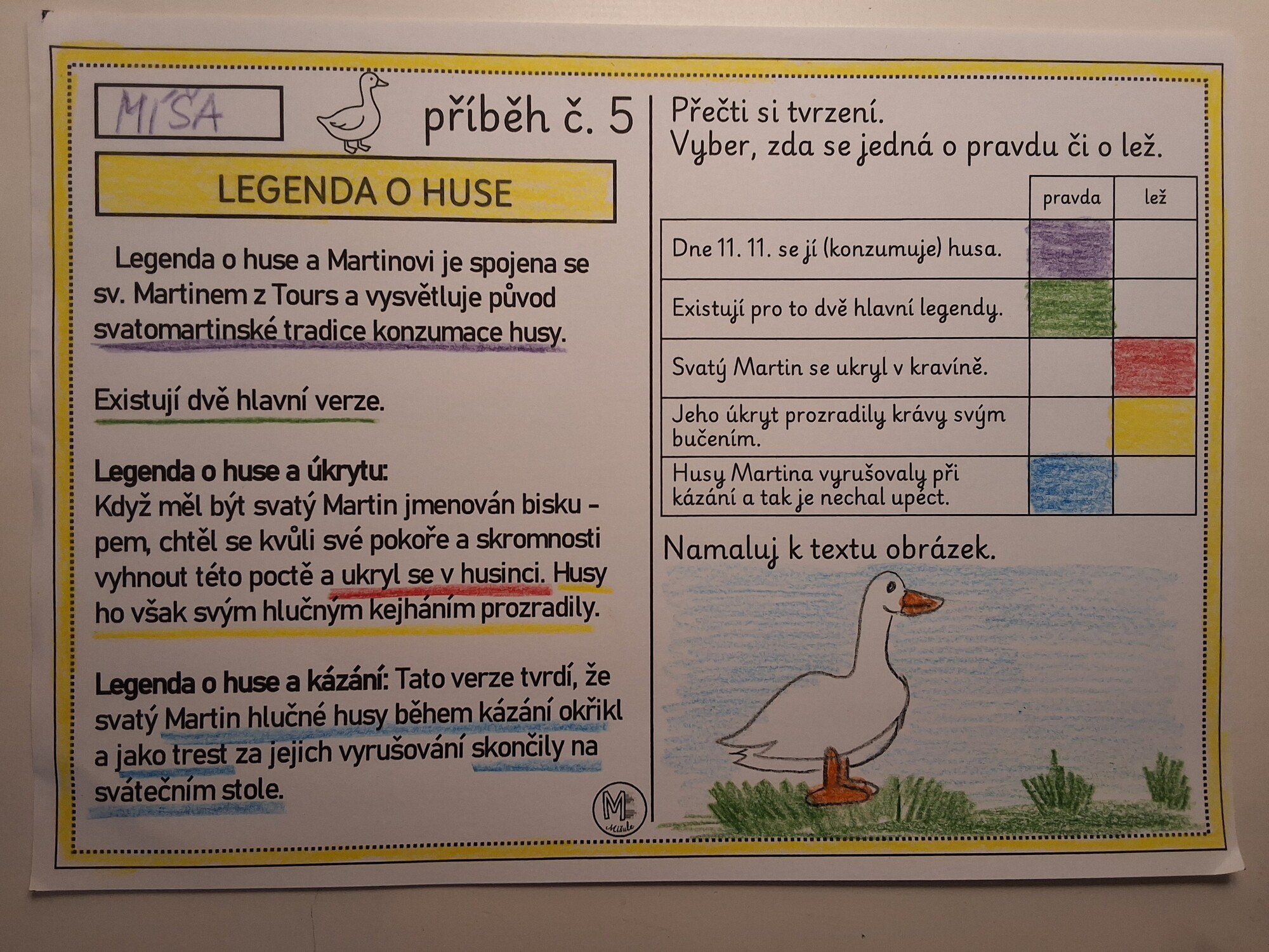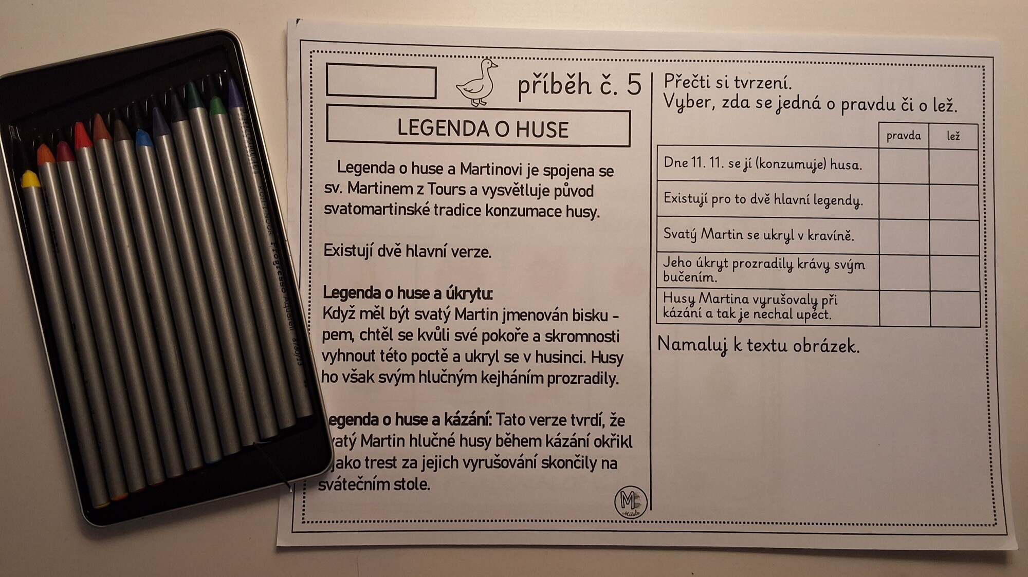 Tento materiál je ideální volbou pro listopadovou výuku. Nabízí čtení s porozuměním, sebehodnocení a přirozené propojení s kulturní tradicí sv. Martina.