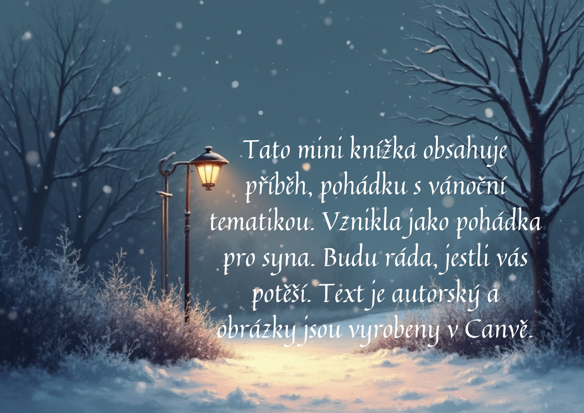Vánoční příběh o sněhové vločce vytvořený v Canvě, text je autorský. Napsala jsem ho synovi jako pohádku. Budu ráda, když někoho náhodou potěší.