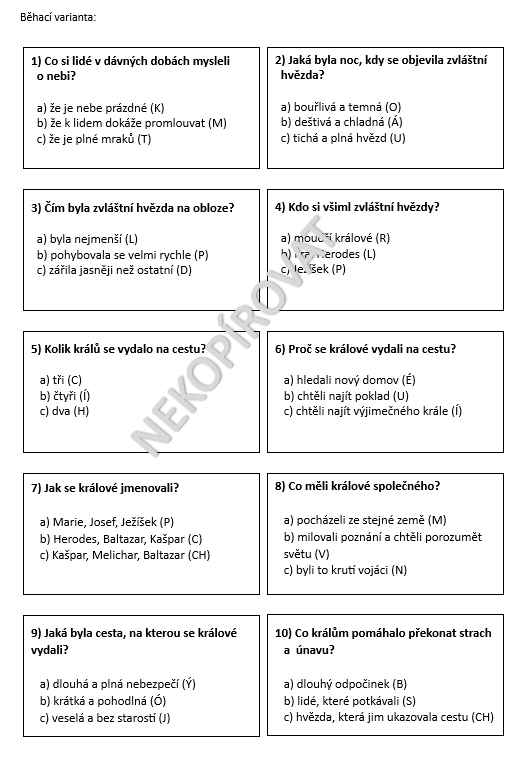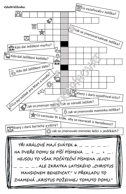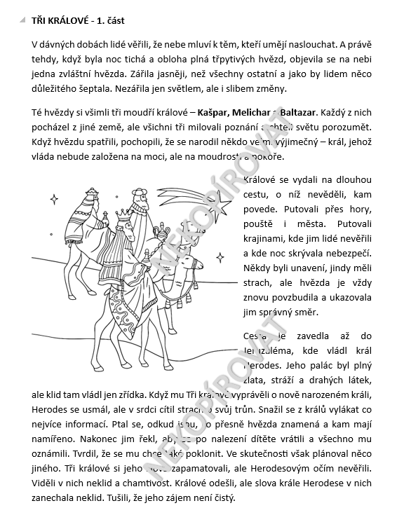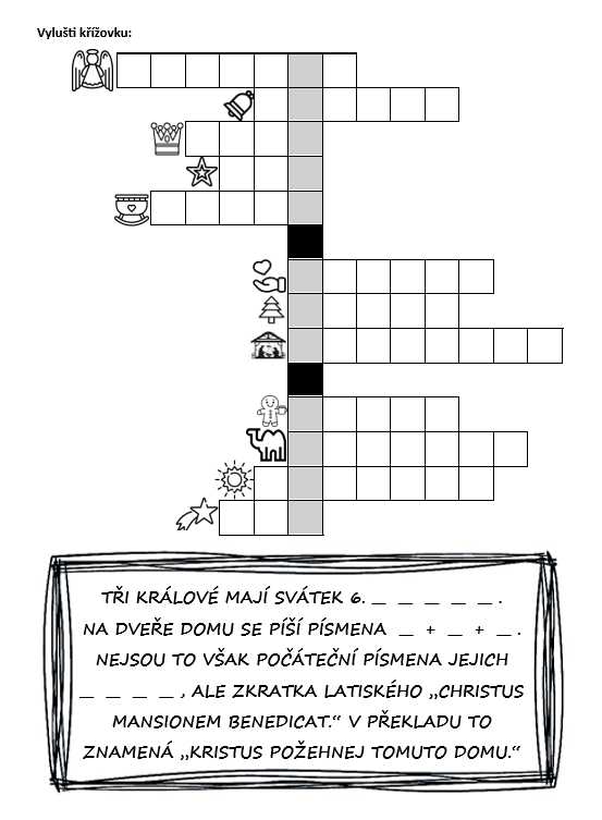 Cílem materiálu je rozvíjet čtenářskou gramotnost – žák porozumí legendě o Třech králích, vyhledá konkrétní informace v textu a vyluští tajenky.
