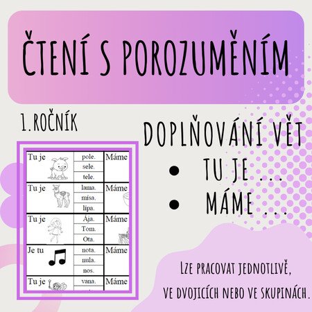 Lze pracovat jednotlivě, dvojicích nebo ve skupinách.