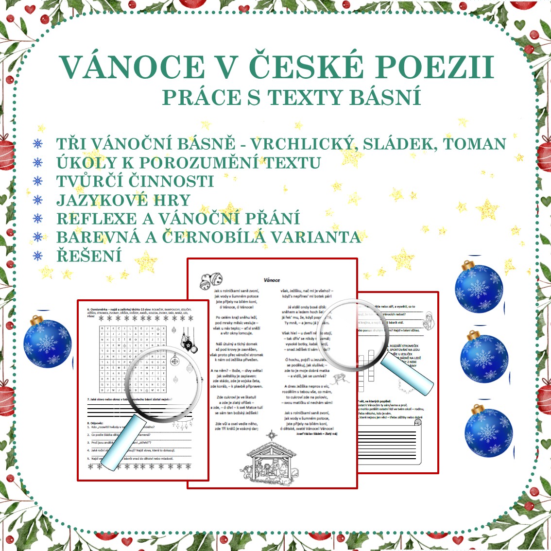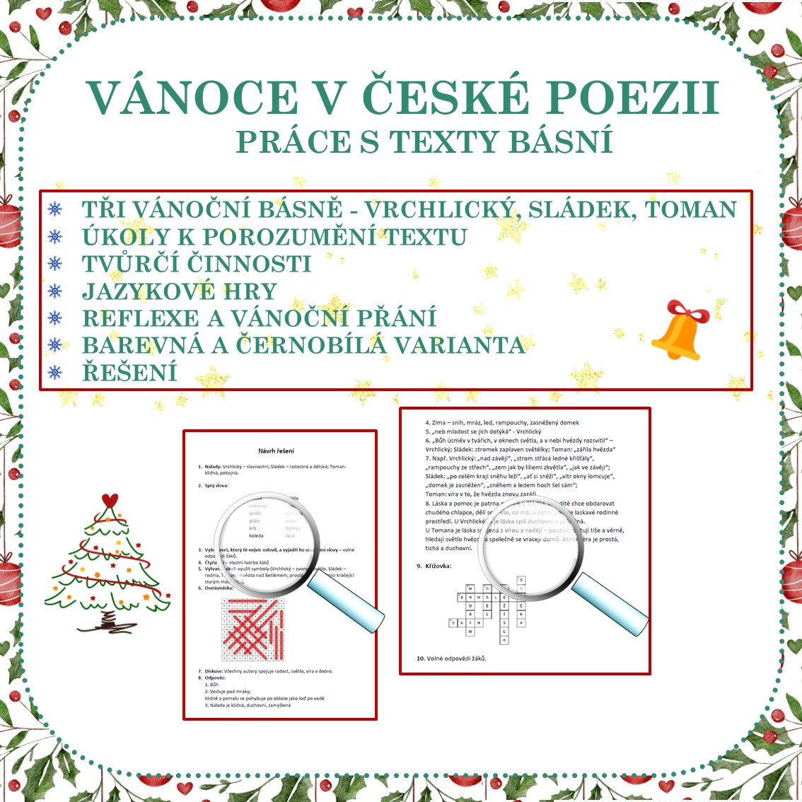 Materiál je navržen tak, aby vedl žáky od čtení a poslechu poezie až k vlastnímu tvoření. Pracuje s texty vánočních básní J. Vrchlického, J, V. Sládka a K. Tomana.