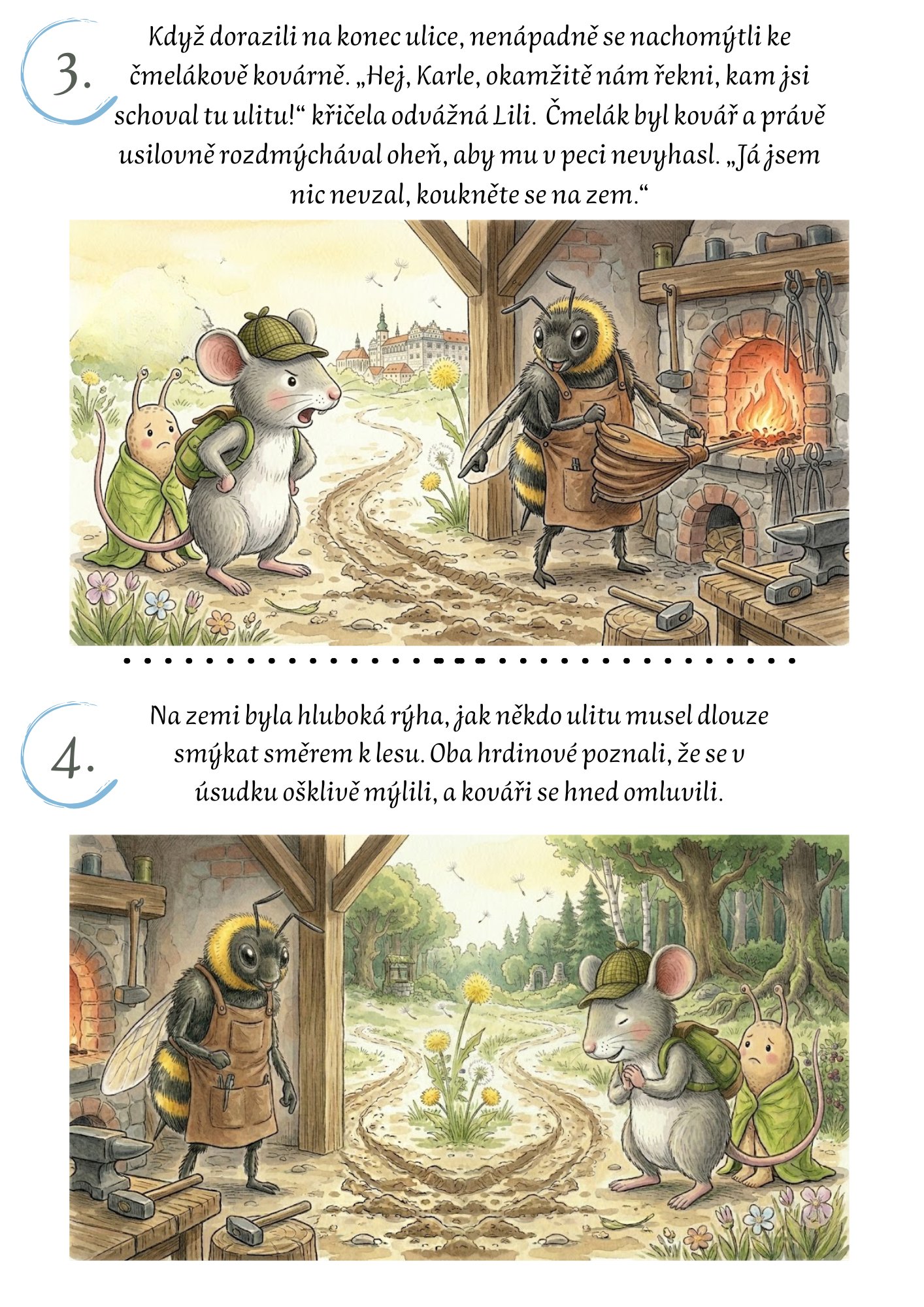 Materiál obsahuje 8 karet příběhu s obrázky, které lze využít pro vytvoření stezky (venku nebo ve škole). Dále příběh ve formátu A4 pro individuální práci. Také obsahuje zvlášť obrázky a text pro skládání příběhu podle posloupnosti.