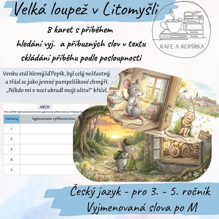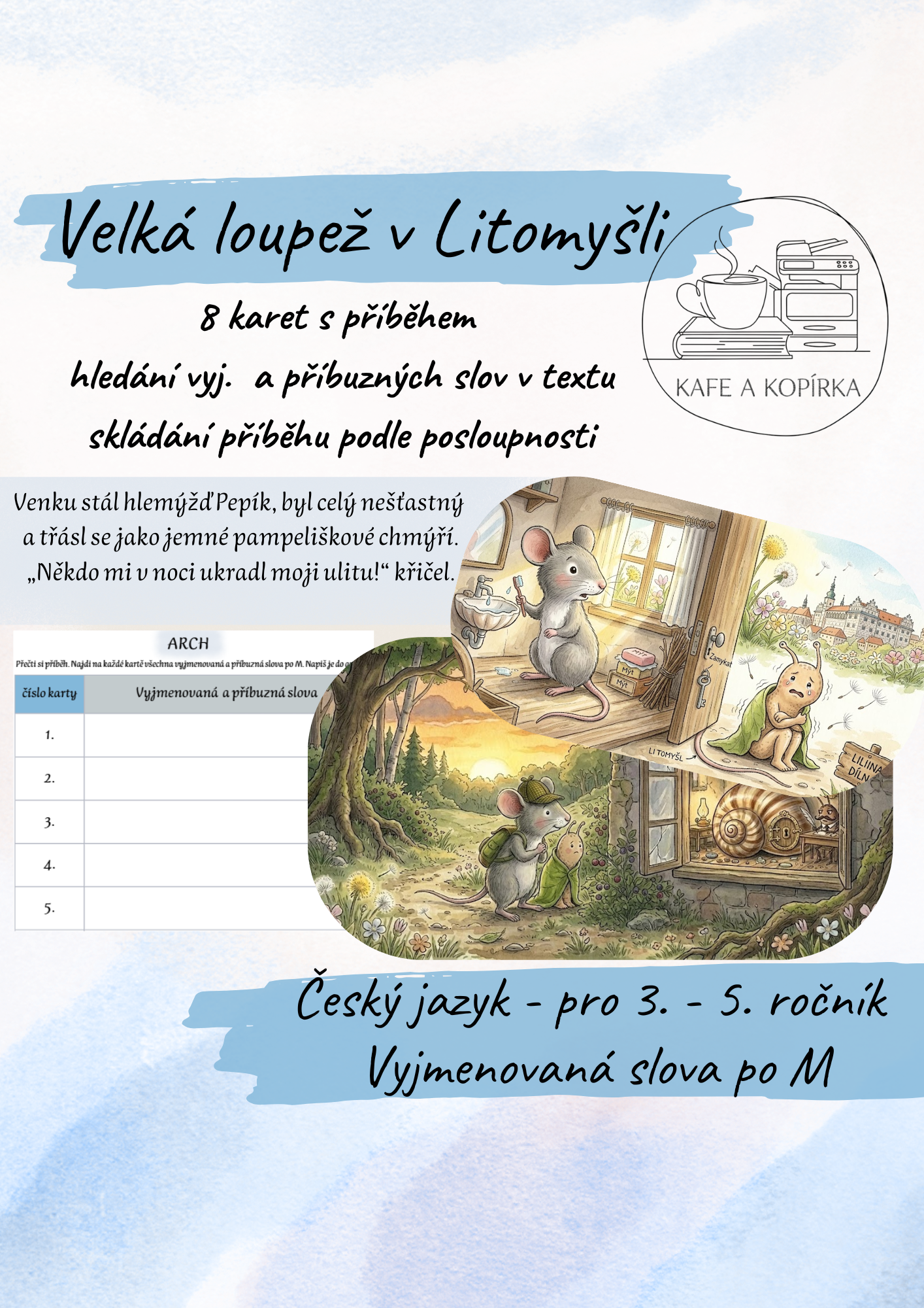 Tento výukový materiál je určen k procvičování vyjmenovaných a příbuzných slov po M. Žáci si na základě materiálu procvičí čtenářskou gramotnost. Je vhodný pro děti 3. - 5. ročníku.