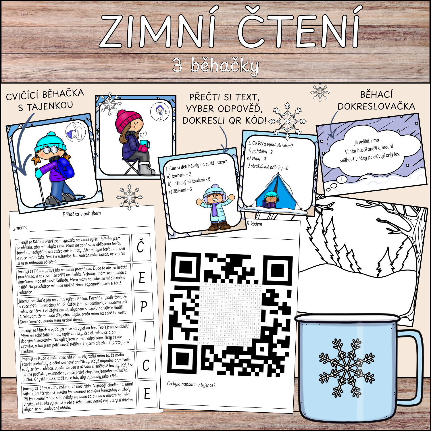Zimní běhací čtení - pohybové, QR kódové, dokreslovací