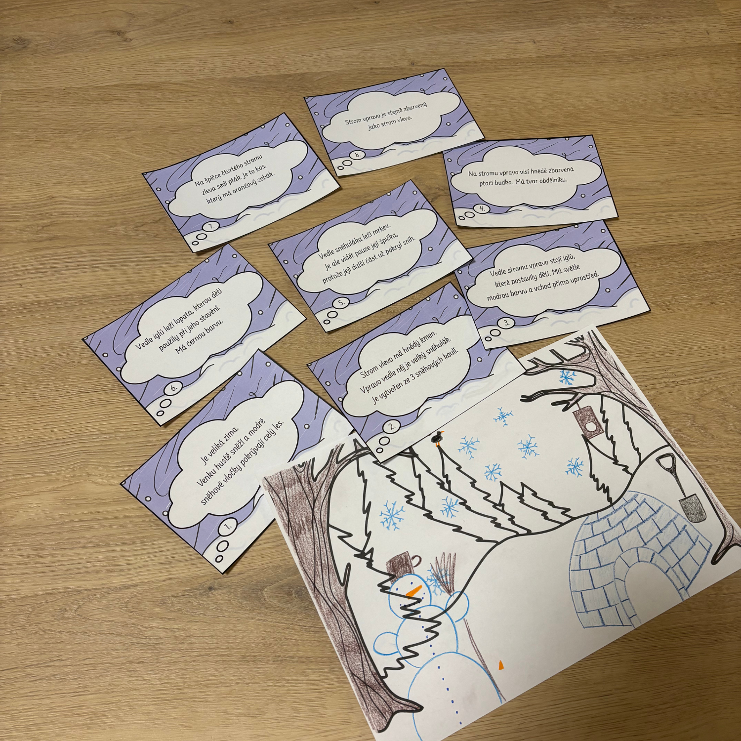 Materiál obsahuje tři běhací čtecí hry se zimní tematikou. Součástí každé hry jsou kartičky určené k rozmístění po třídě, záznamové archy pro žáky a řešení pro pedagoga. Všechny části materiálu jsou k dispozici v barevné i černobílé verzi.