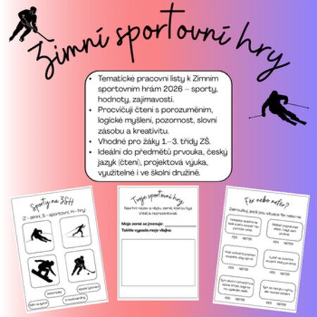 Zimní sportovní hry 2026 – interaktivní pracovní listy pro 1.–3. třídu jsou tematicky laděným vzdělávacím materiálem, který děti hravou formou seznamuje se světem zimních sportů a hodnotami, jako jsou spolupráce, respekt a fair play.