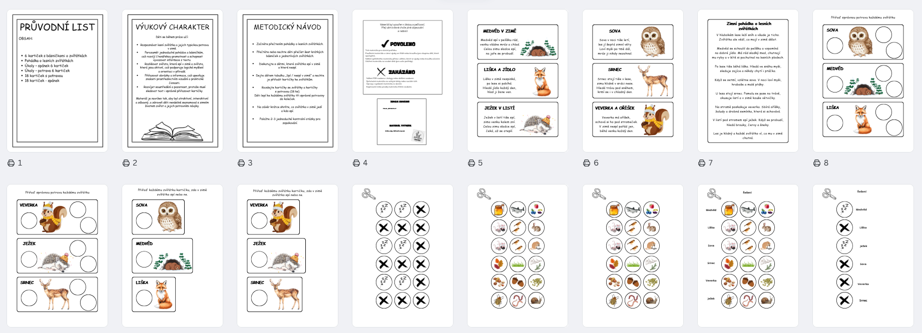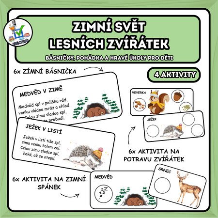Materiál je navržen tak, aby byl atraktivní, interaktivní a zábavný, a zároveň děti nenásilně seznamoval s zimním životem zvířat a jejich potravními návyky.