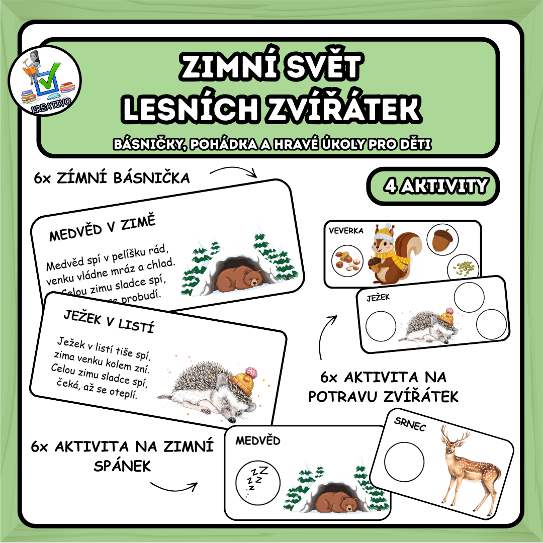 - Rozlišovat zvířata, která spí v zimě a zvířata, která jsou aktivní, což podporuje logické myšlení a orientaci v přírodě.