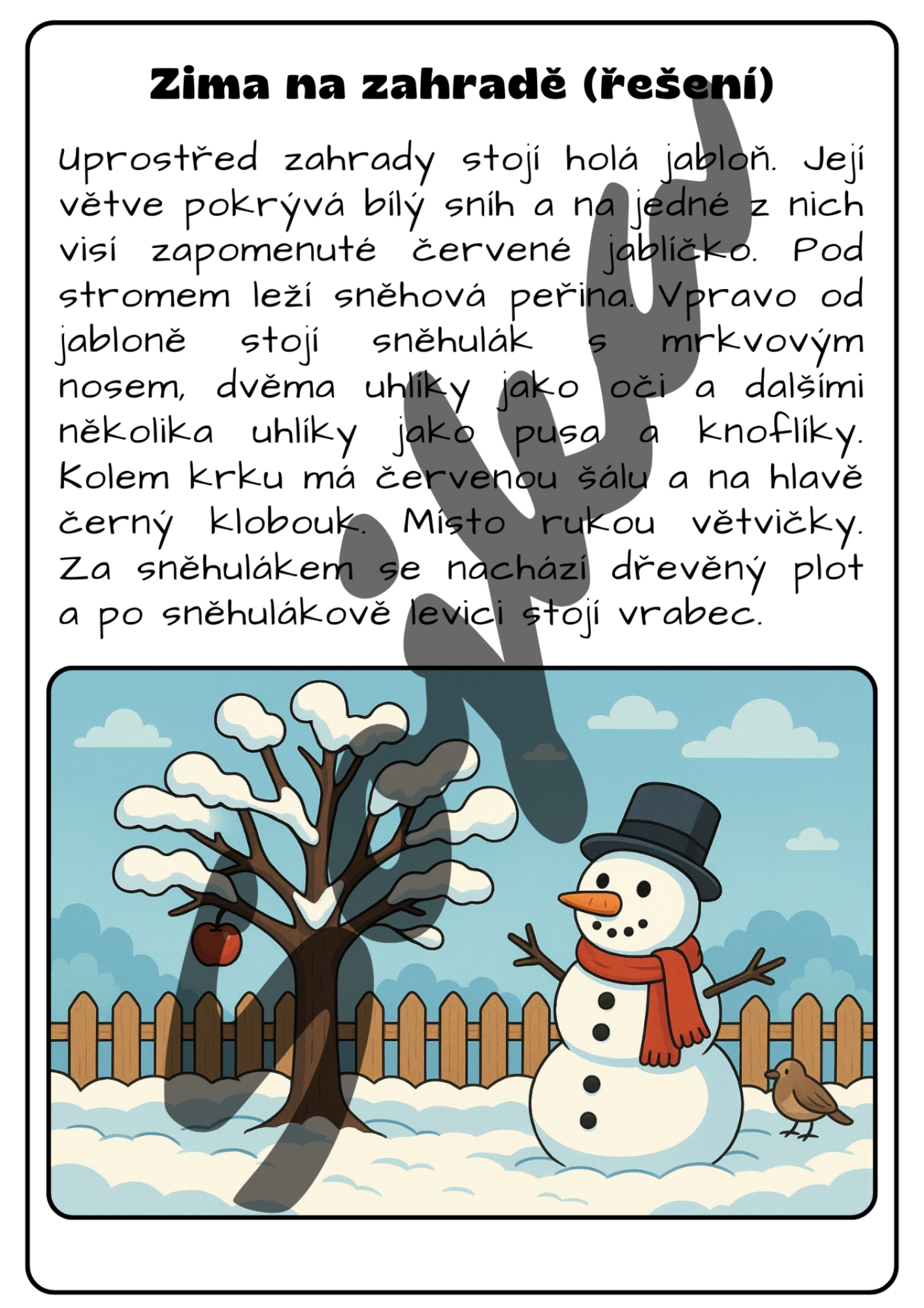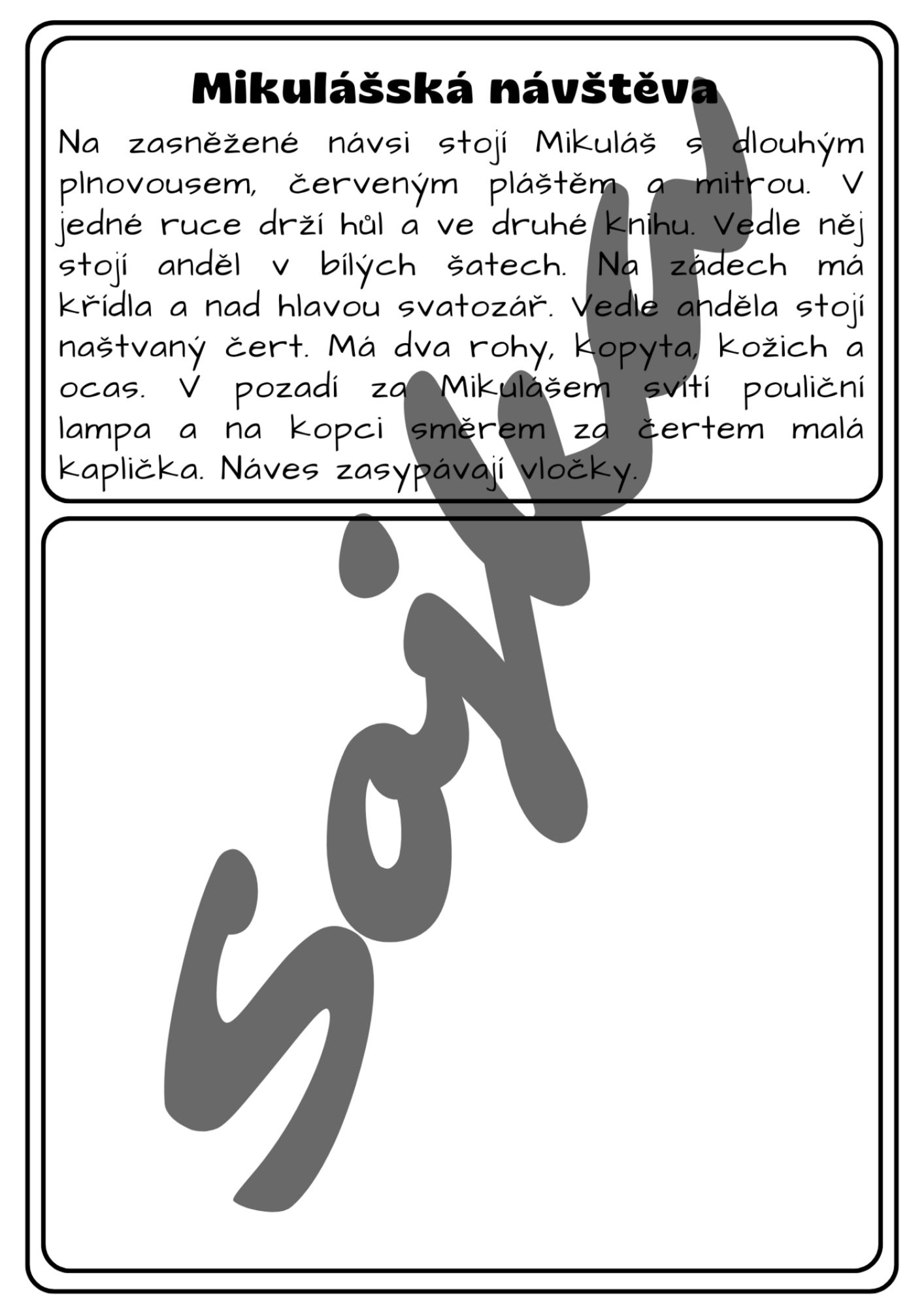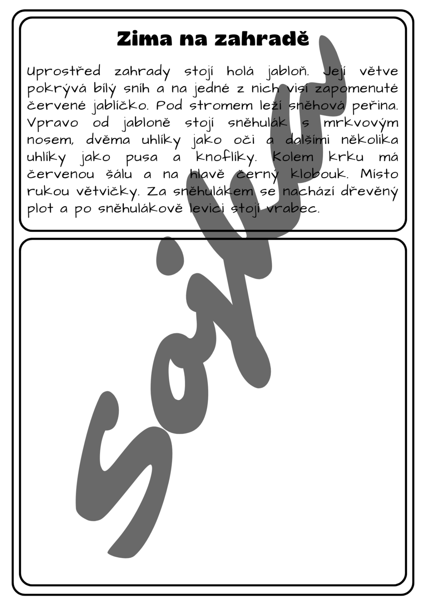 - každý žák obdrží pracovní list, jeho úkolem je si přečíst zadání a podle něj namalovat obrázek