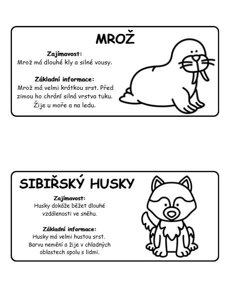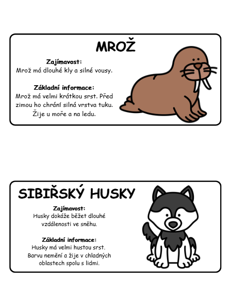 Výukový materiál je zaměřený na poznávání zvířat dalekého severu formou informačních karet a zimní stezky.