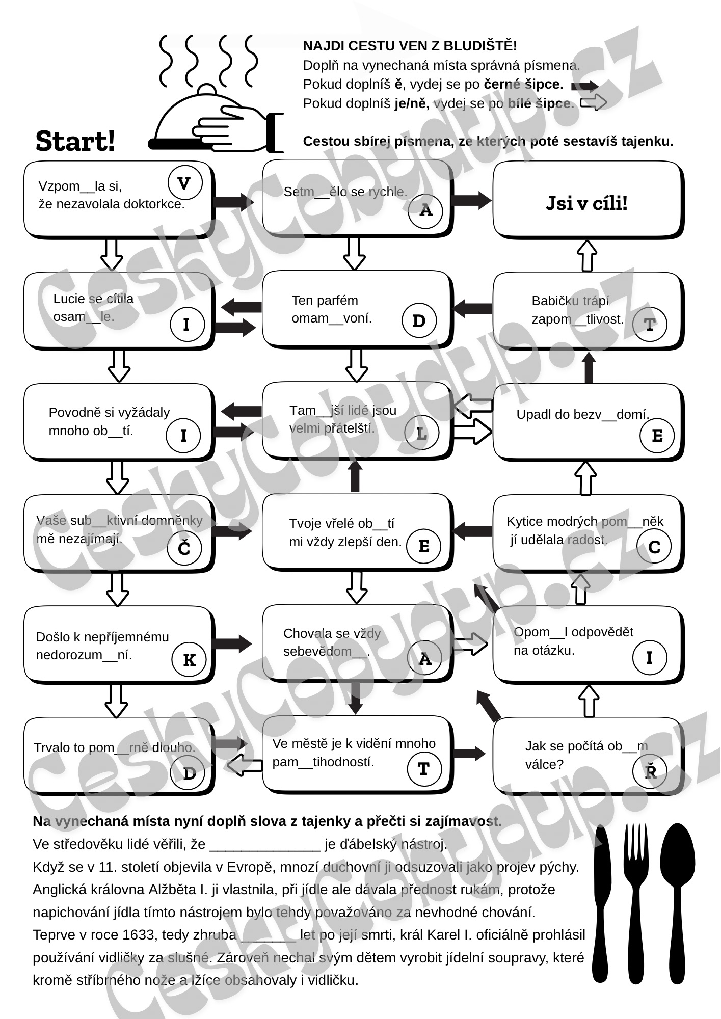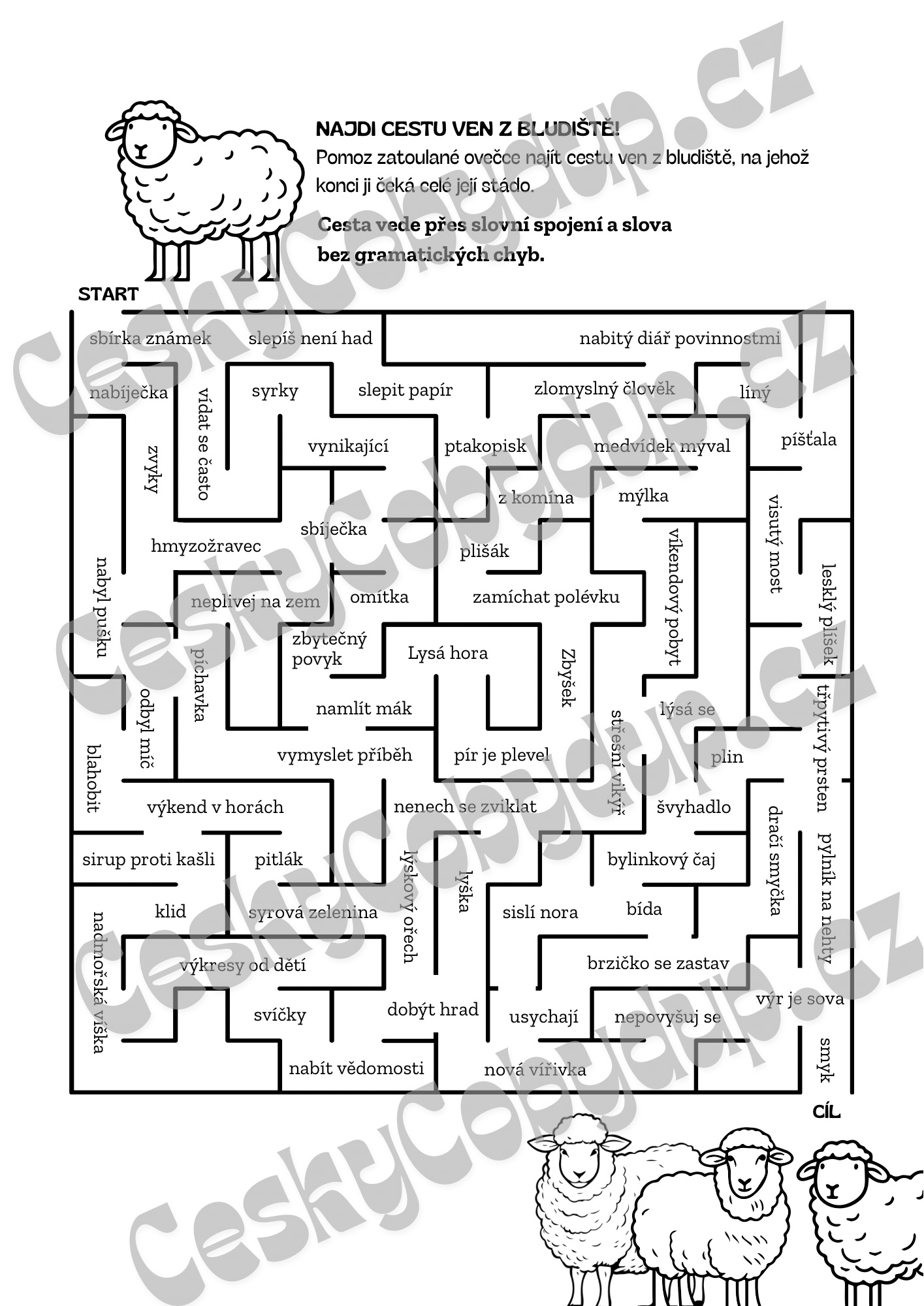 1. Bludiště s ovečkou: vyjmenovaná slova (hledání chyb)