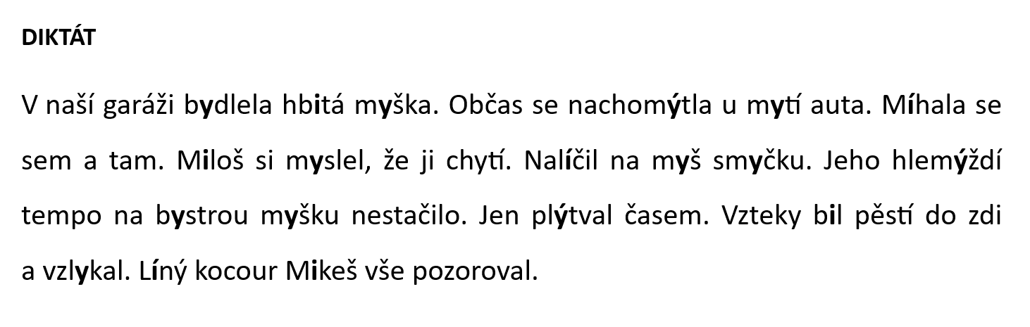 2 diktáty – vyjmenovaná a příbuzná slova po L
