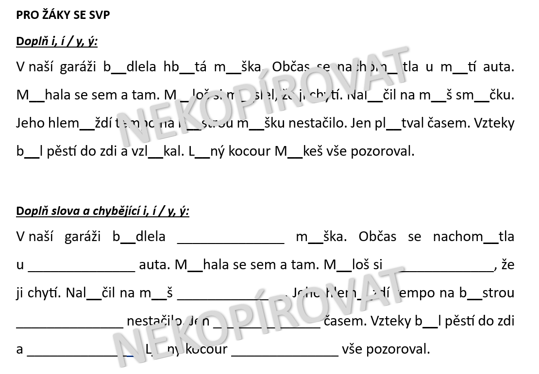pro žáky se SVP jsou diktáty nachystané 2 typy jako doplňovací cvičení na procvičení vyjmenovaných a příbuzných slov po B, L a M