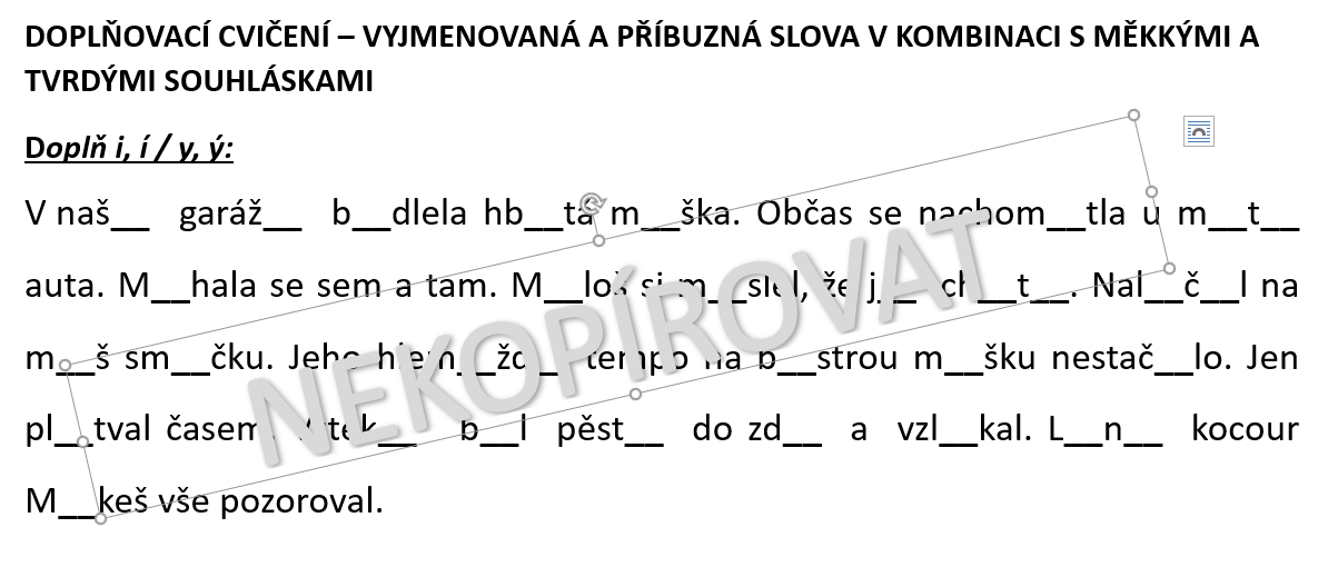 kombinace doplňování íček a vynechaných vyjmenovaných nebo příbuzných slov do textu