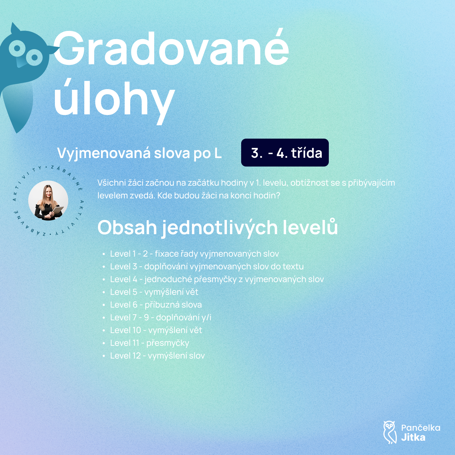 - Level 4 - jednoduché přesmyčky z vyjmenovaných slov