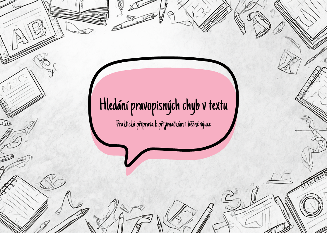 Soubor 32 textů zaměřených na vyhledávání pravopisných chyb – ideální příprava k přijímacím zkouškám z českého jazyka.