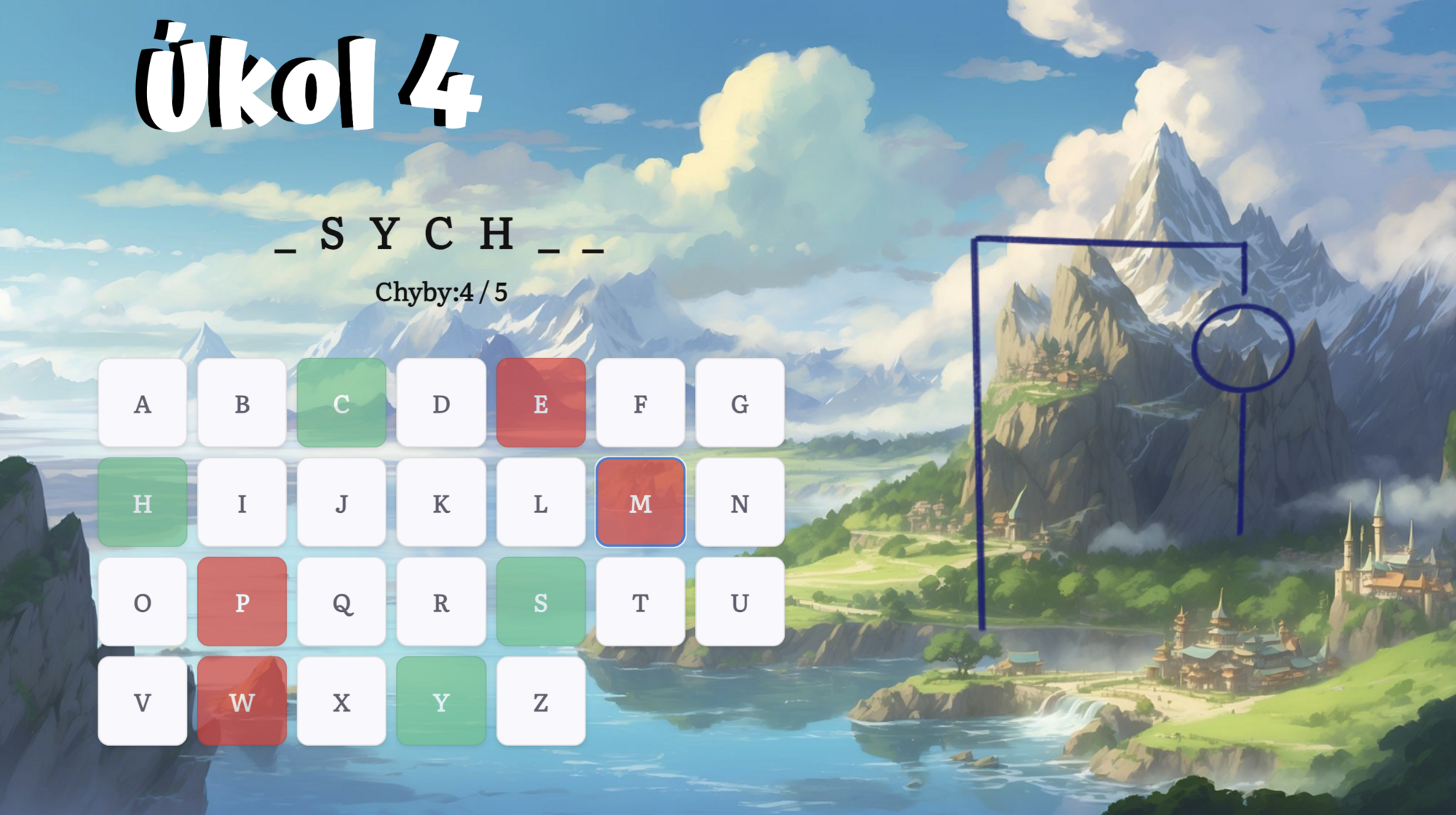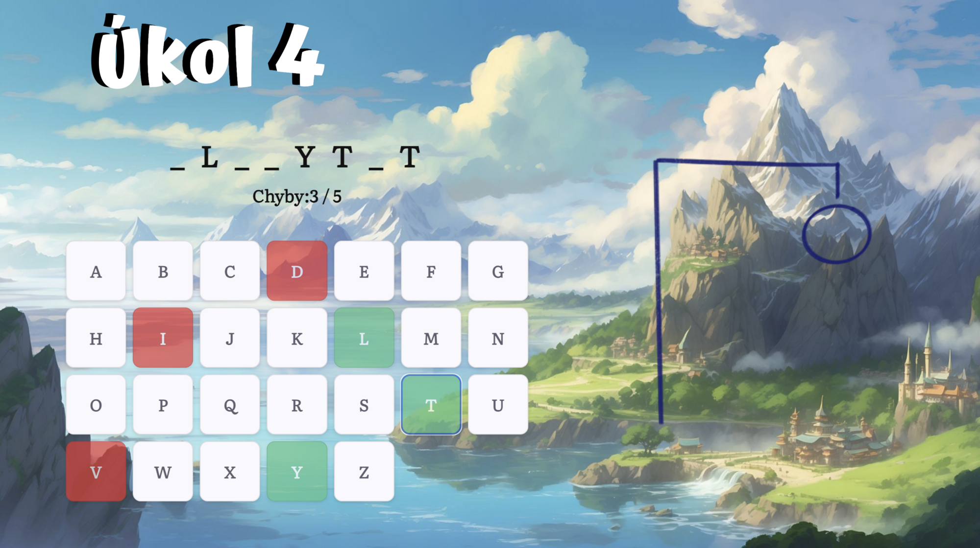 Známá hra, žák postupně hádá 5 vyjmenovaných slov. Může udělat max. 5 chyb, jinak začíná stejné slovo znovu.