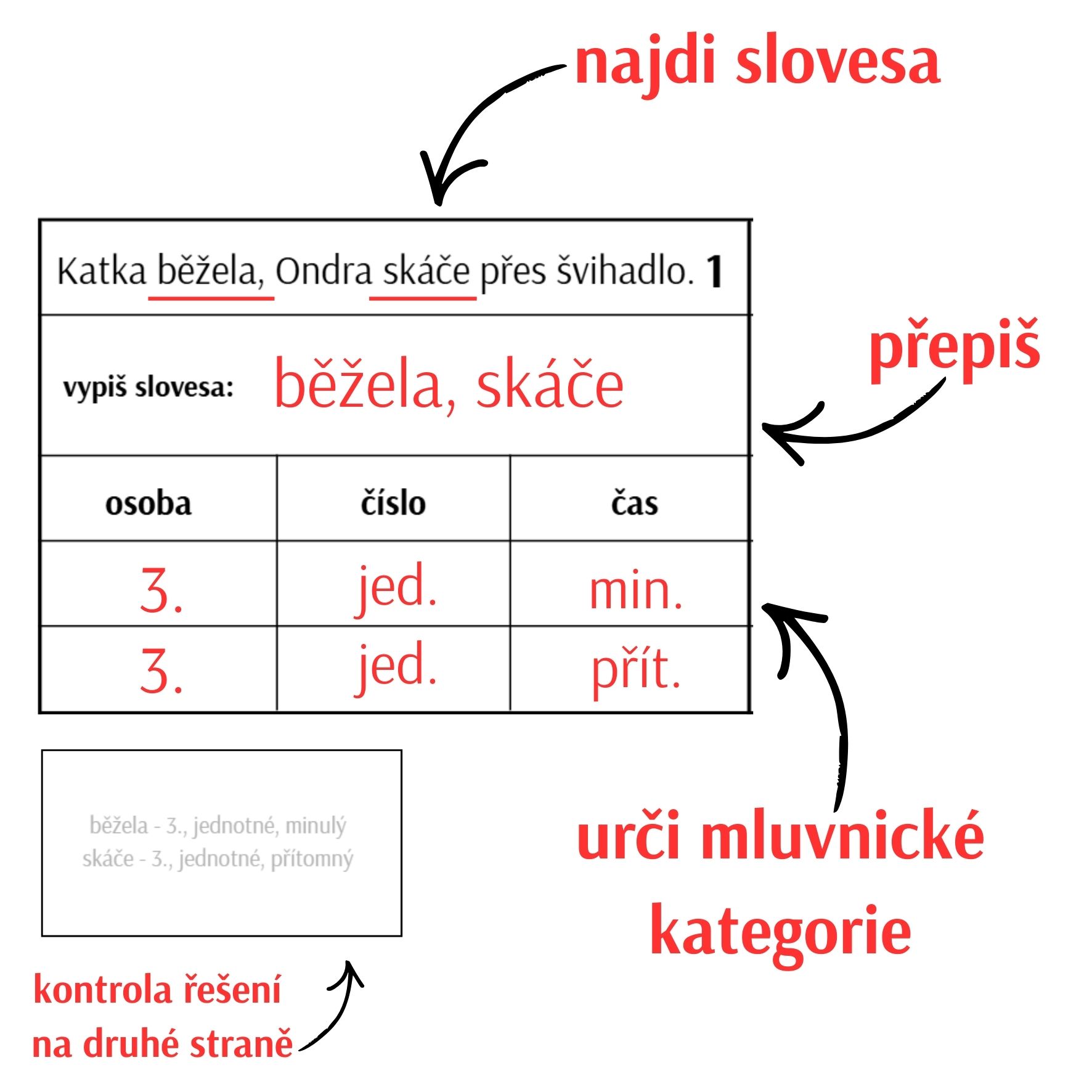 Žák vyhledá sloveso, určí mluvnické kategorie.