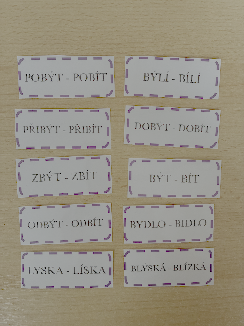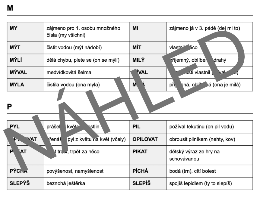 Obsahuje 88 slov zvukově shodných, ale graficky odlišných – tzv. homofonů na 45 kartách.