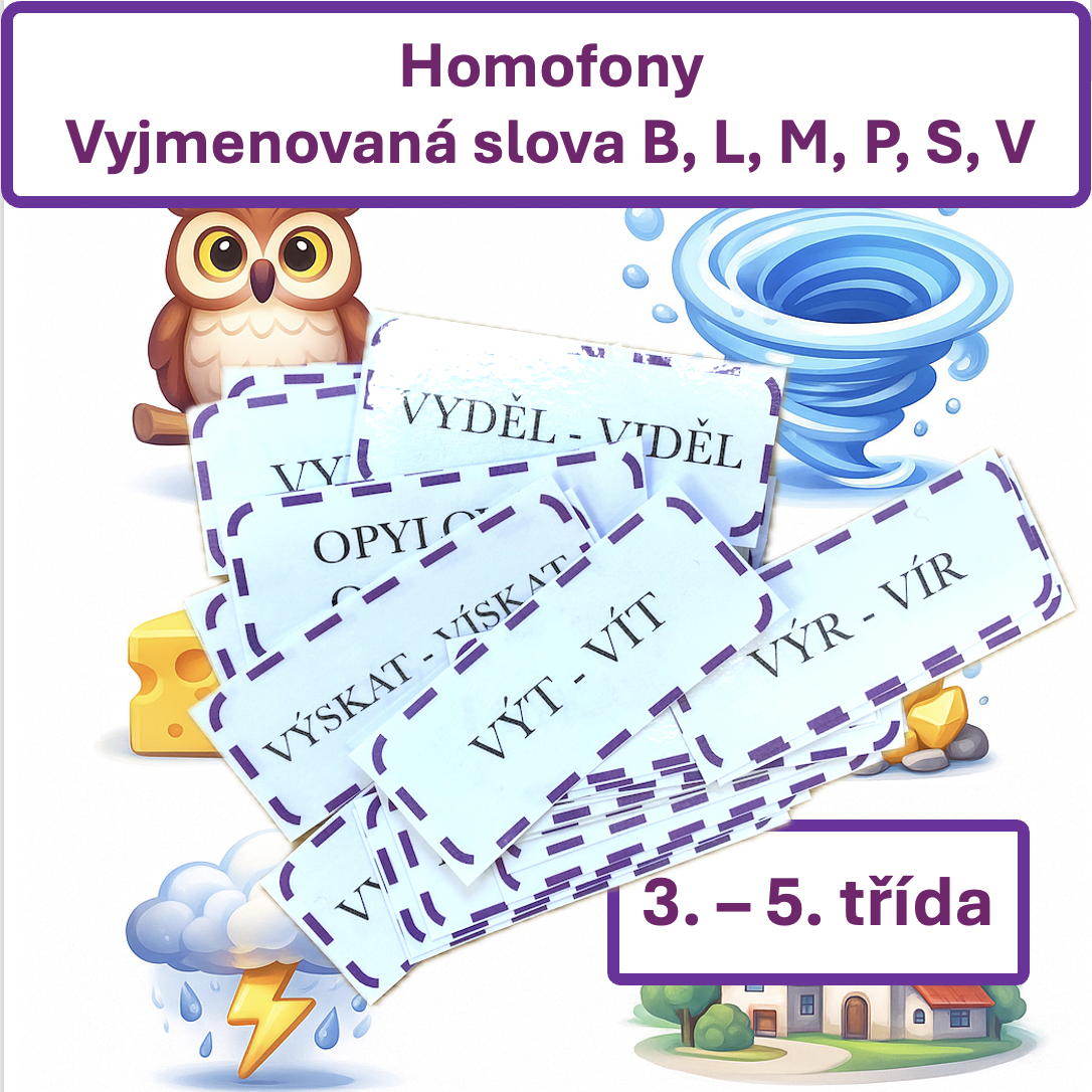 Didaktická pomůcka cvičí porozumění významu slov a procvičuje komunikační schopnosti a slovní zásobu. Žáci si zažijí a procvičí vyjmenovaná slova a jejich význam, odliší je od slov stejně znějících. Zvyšujeme tak vyjadřovací schopnosti.