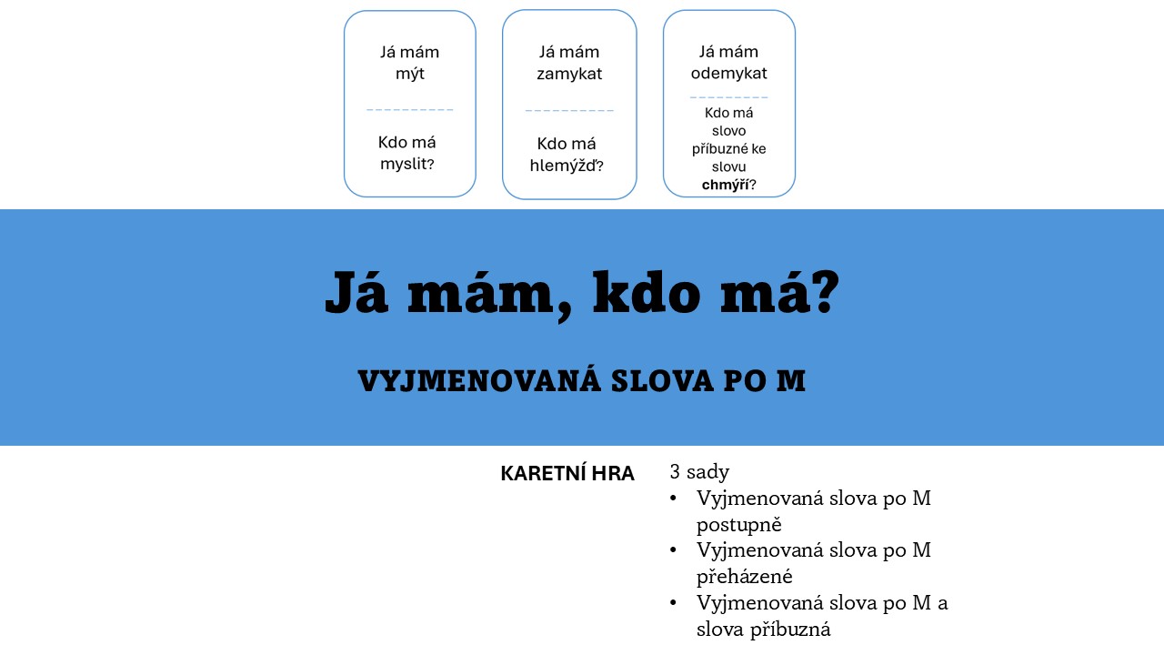 2. Žák s první kartou začne větou: „Já mám první kartu, kdo má…