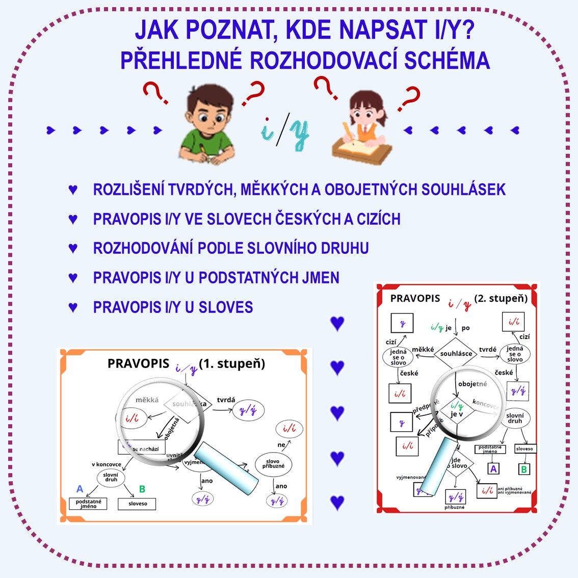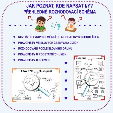 Materiál obsahuje přehledné schéma českého pravopisu i/y po souhláskách.