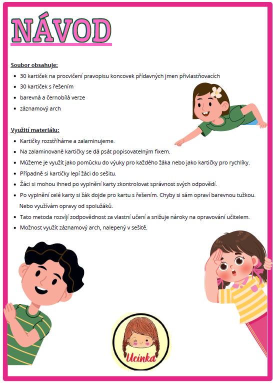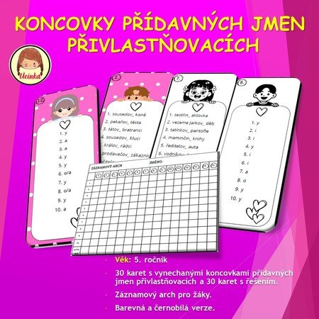 - 30 kartiček na procvičení pravopisu koncovek přídavných jmen přivlastňovacích