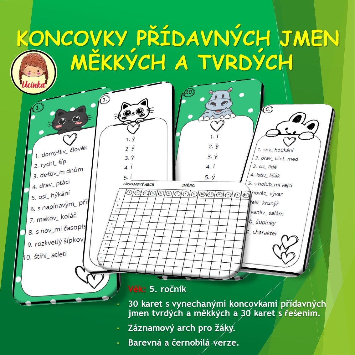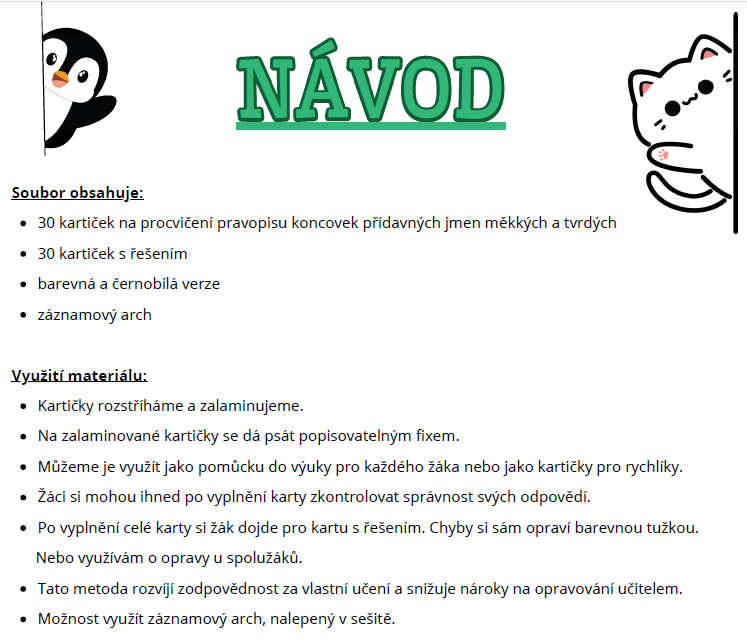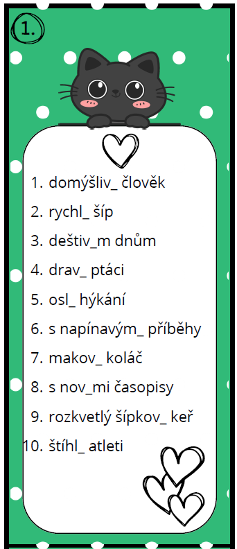 - 30 kartiček na procvičení pravopisu koncovek přídavných jmen měkkých a tvrdých