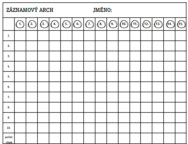 - Po vyplnění celé karty si žák dojde pro kartu s řešením. Chyby si sám opraví barevnou tužkou.