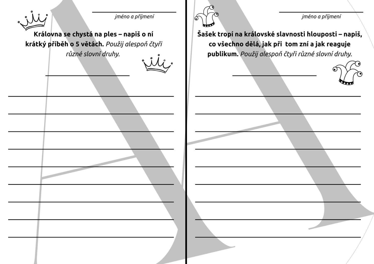 3. Pracovní list - 2 úkoly k napsání příběhu