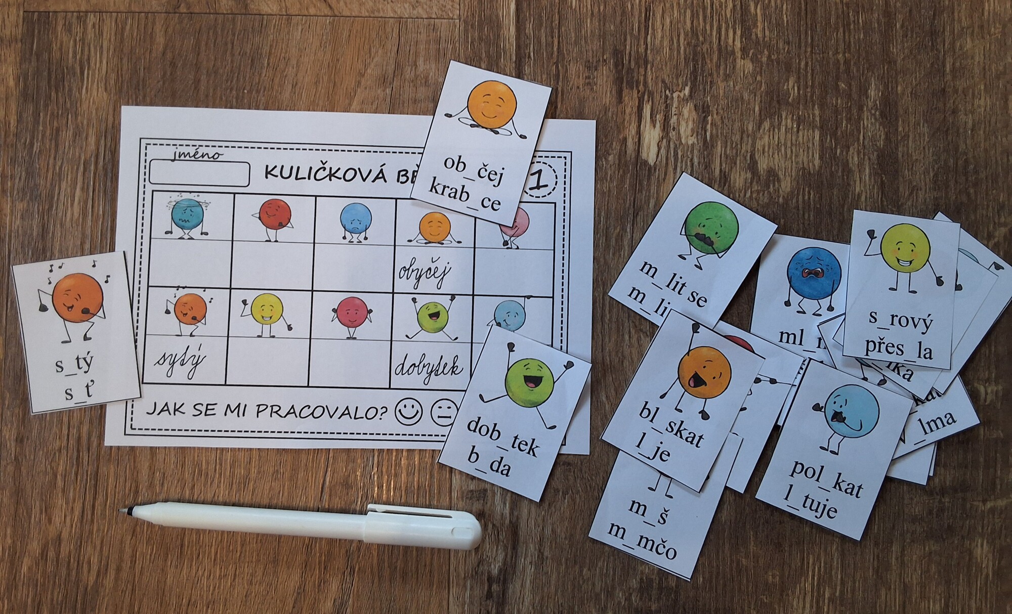 • 20 karet se znázorněním slov- psací