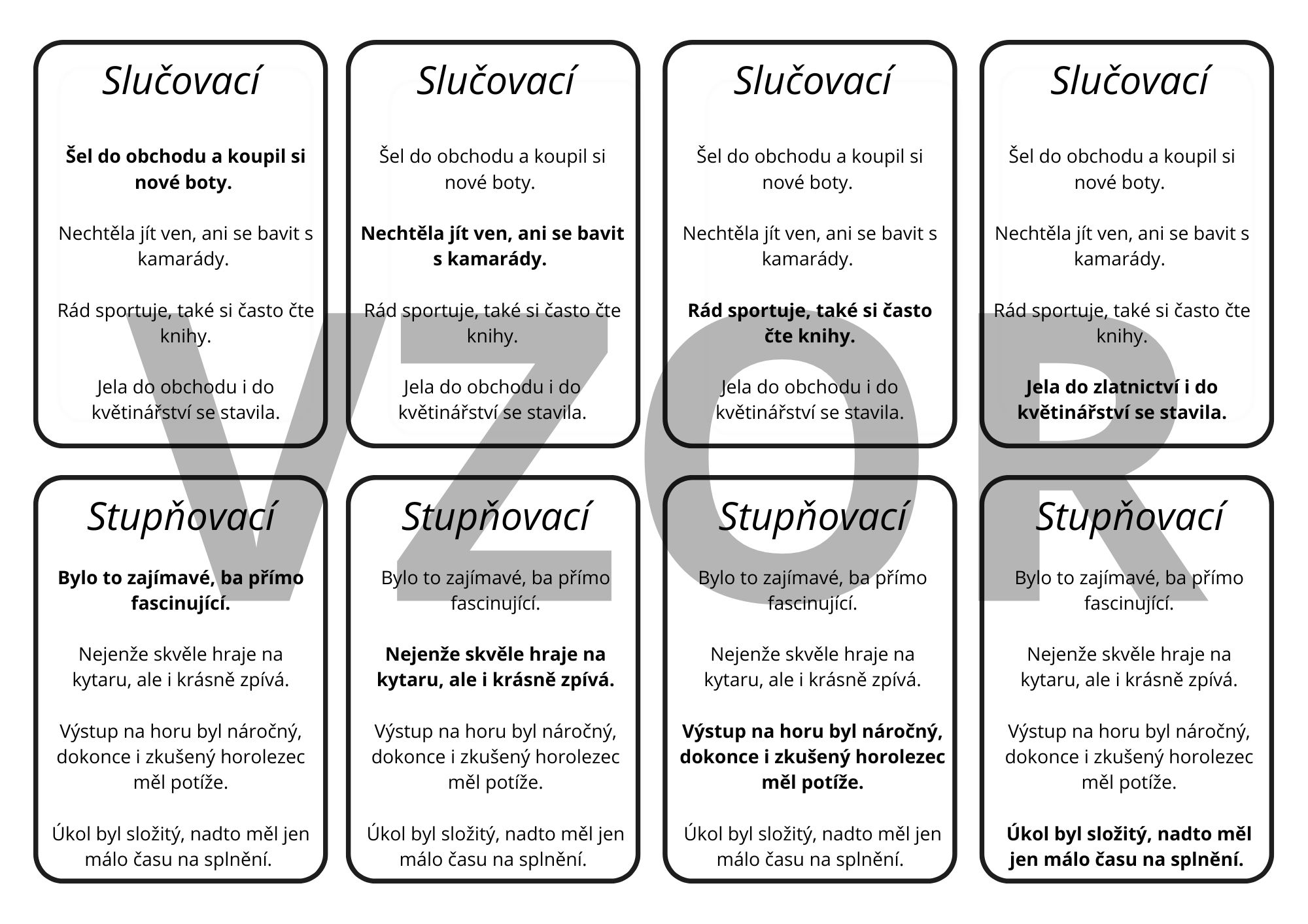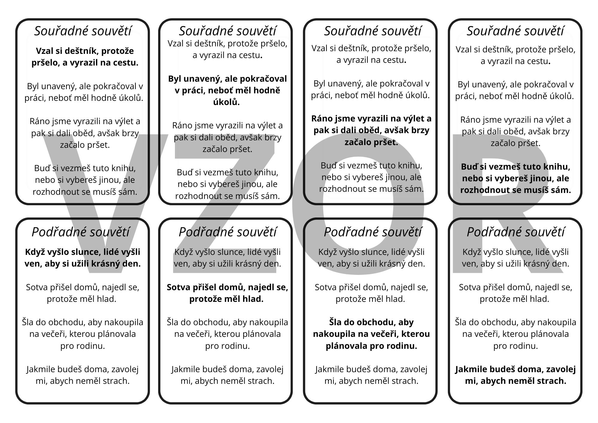 Materiál obsahuje dvě verze karetní hry kvarteta na významové poměry, souvětí souřadné a podřadné a je určen pro žáky 8. - 9. tříd. Součástí materiálu je i pracovní list na komplexní zopakování učiva na významové poměry.