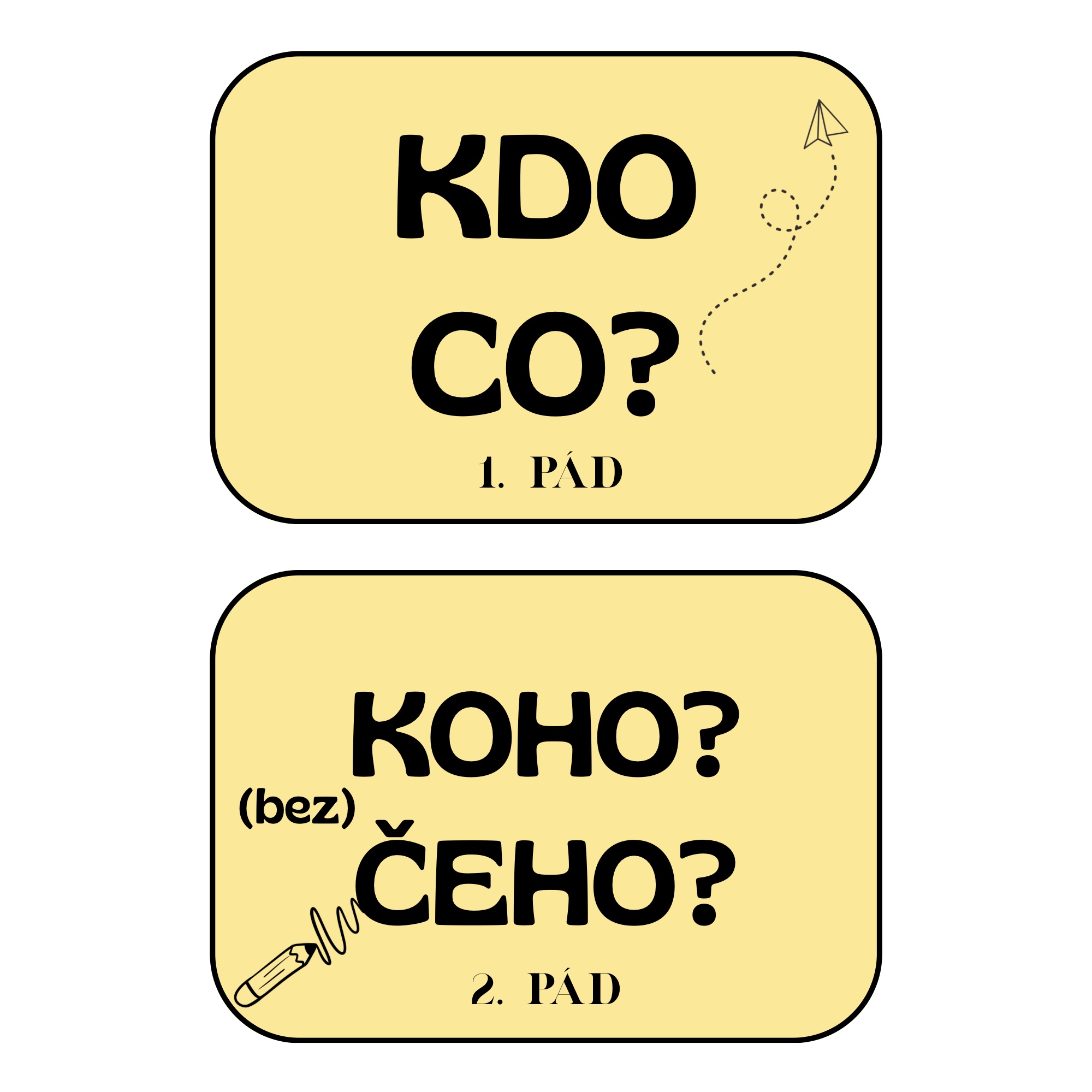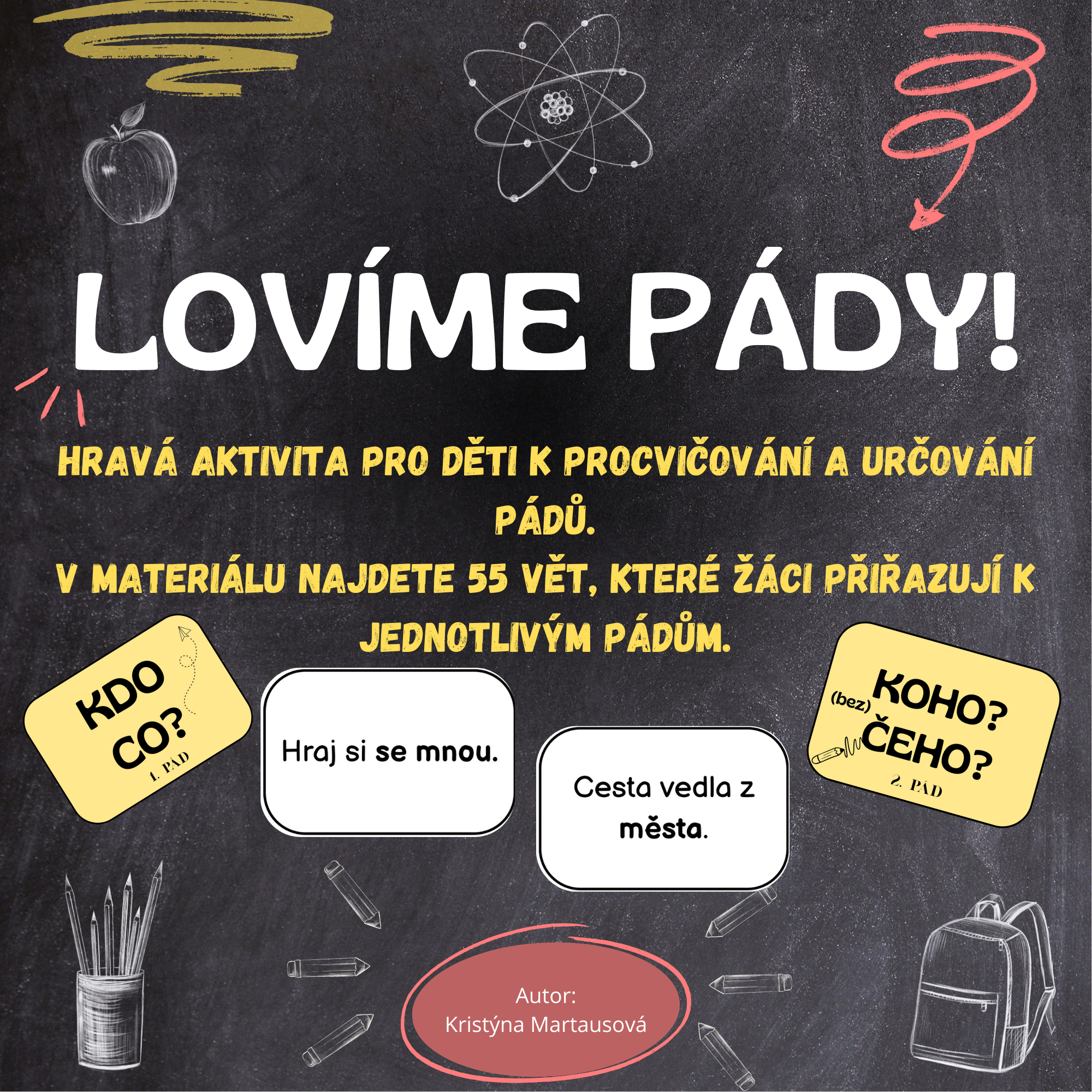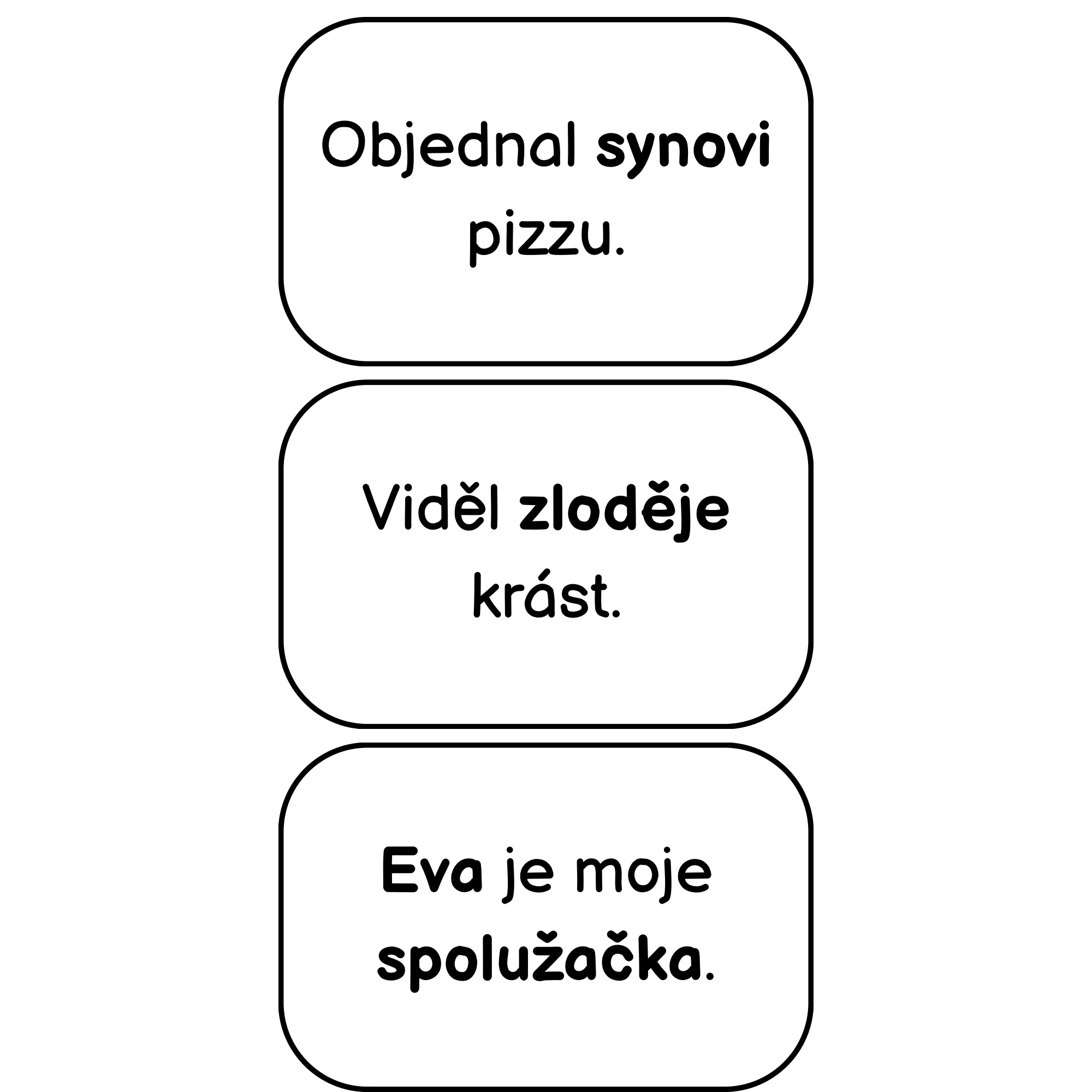 V materiálu najdete 55 vět, které žáci přiřazují k jednotlivým pádům.
