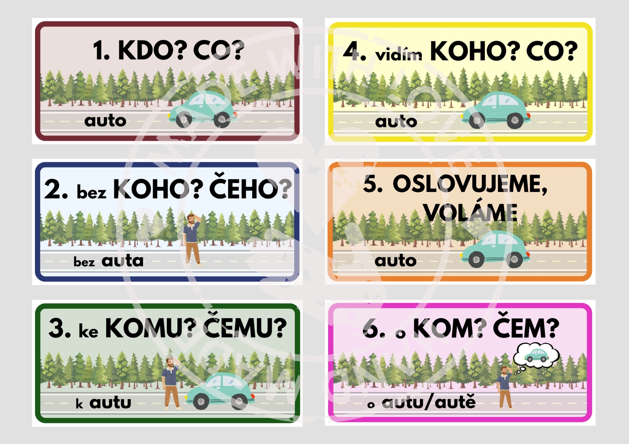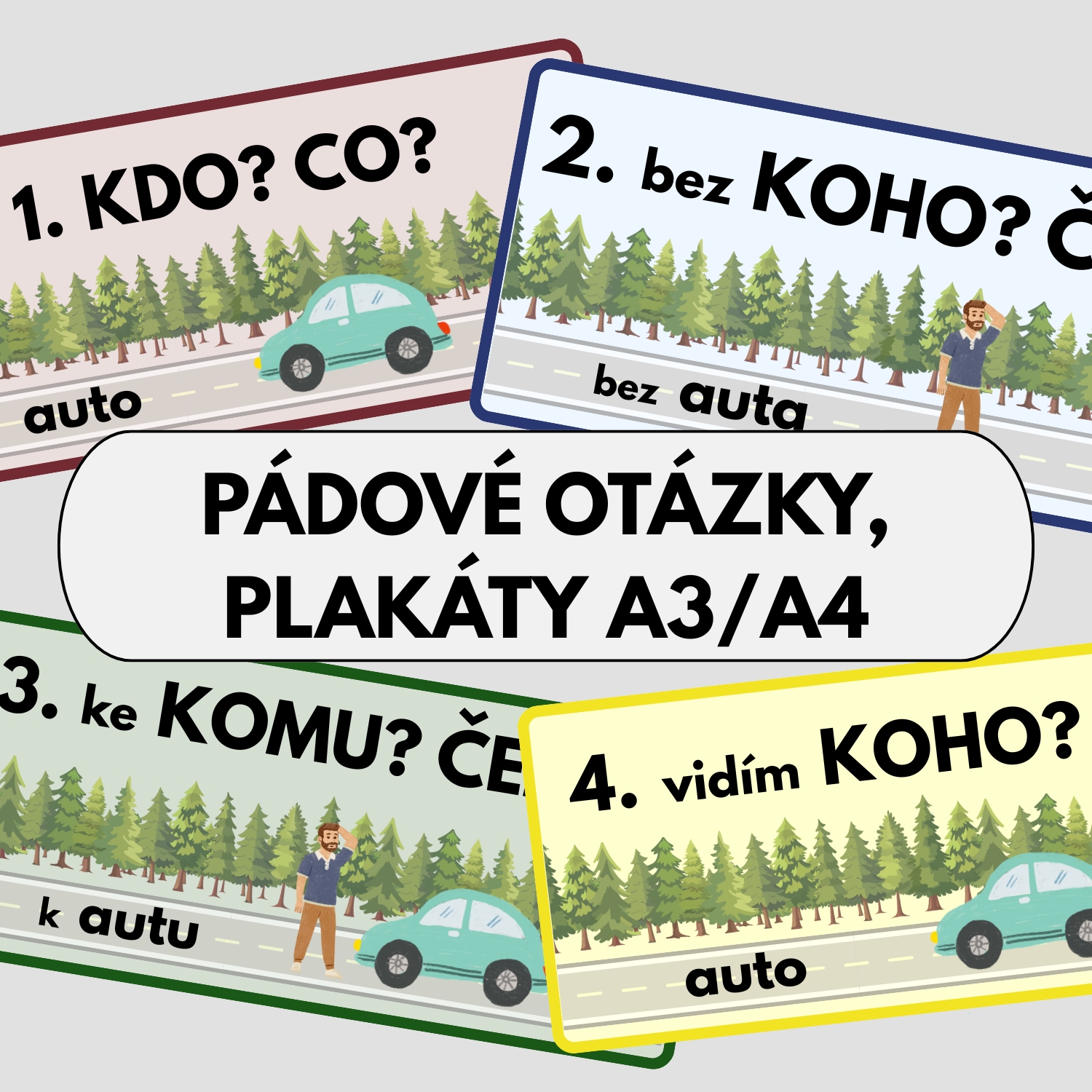 Plakáty s PÁDOVÝMI OTÁZKAMI velikosti A3 i A4 (3 na jedné straně), které jsou vhodné k použití na výzdobu třídy na prvním stupni základní školy.