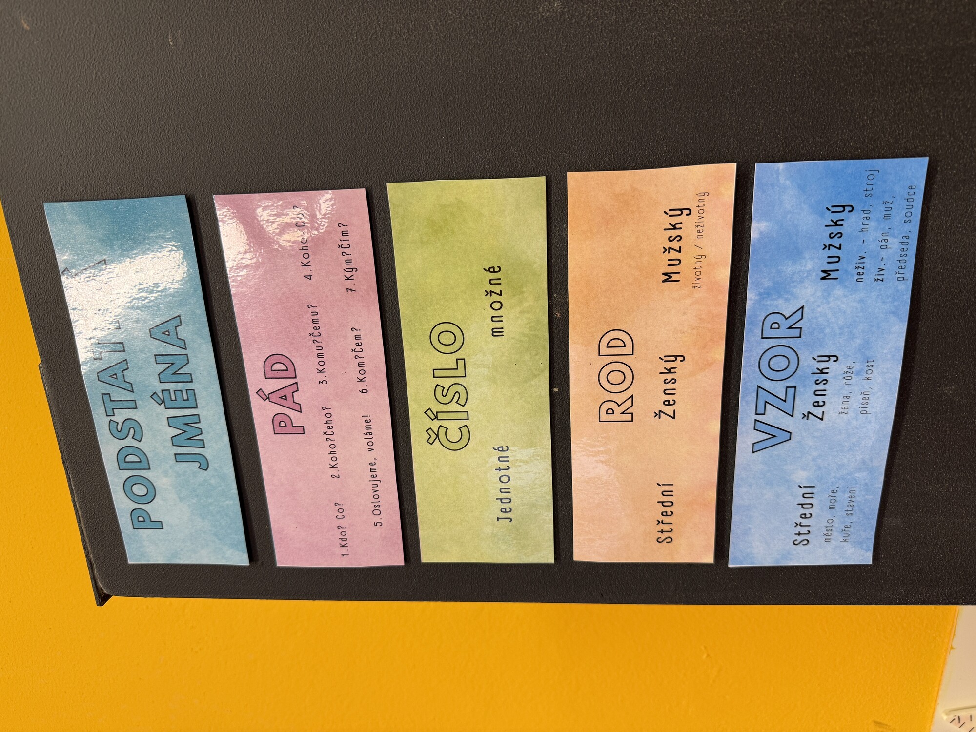 - didaktická pomůcka do penálu – přehled koncovek podstatných jmen, který dětem pomáhá správně určit vzor