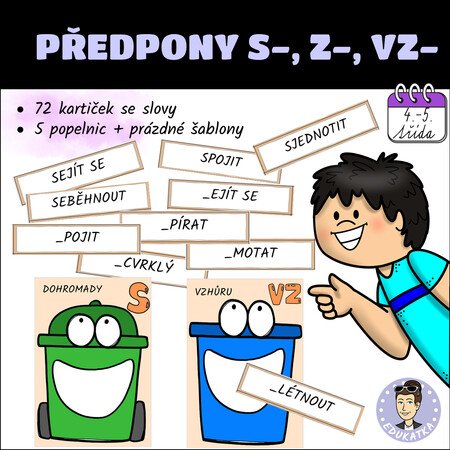 Materiál obsahuje: 72 kartiček se slovy s předponami S, Z, VZ,