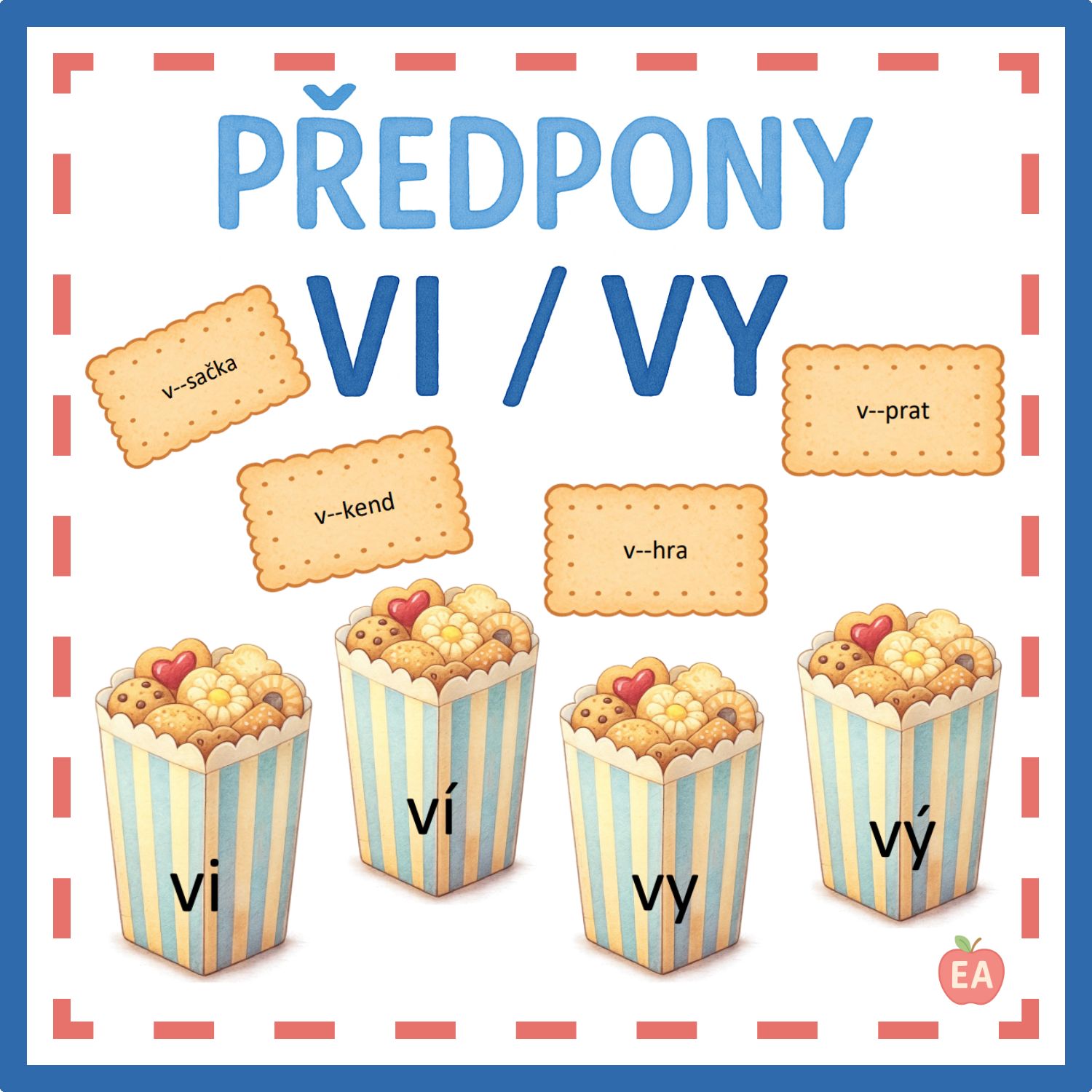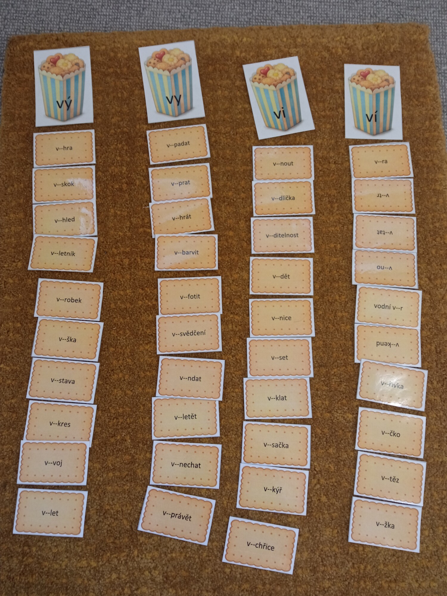 - 4 x kartička s krabičkou – VI, VÍ, VY, VÝ - při oboustranném tisku je vzadu napsáno správné řešení