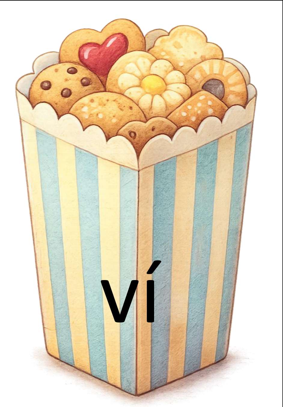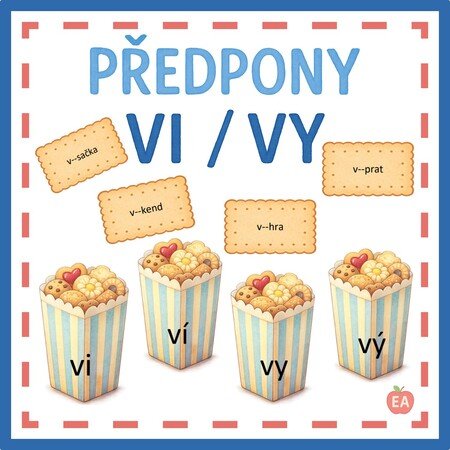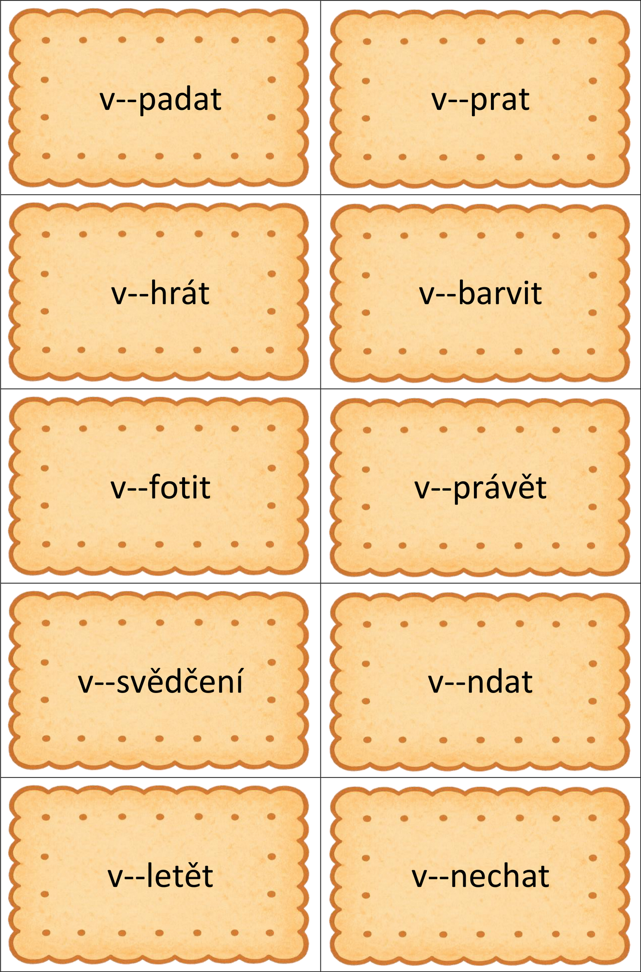 - děti berou kartičky se sušenkami, doplňují vhodnou samohlásku a přiřazují ke krabičce