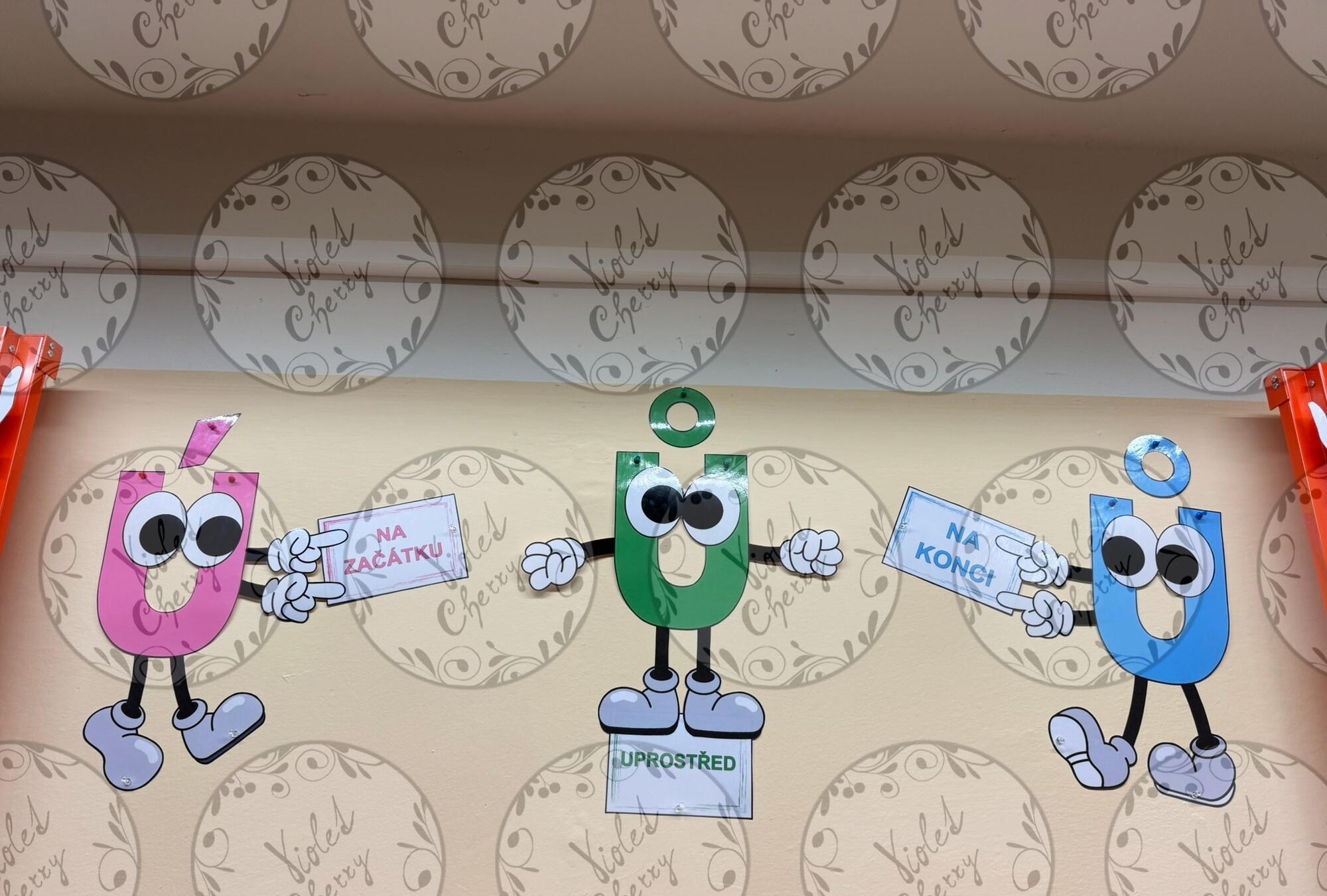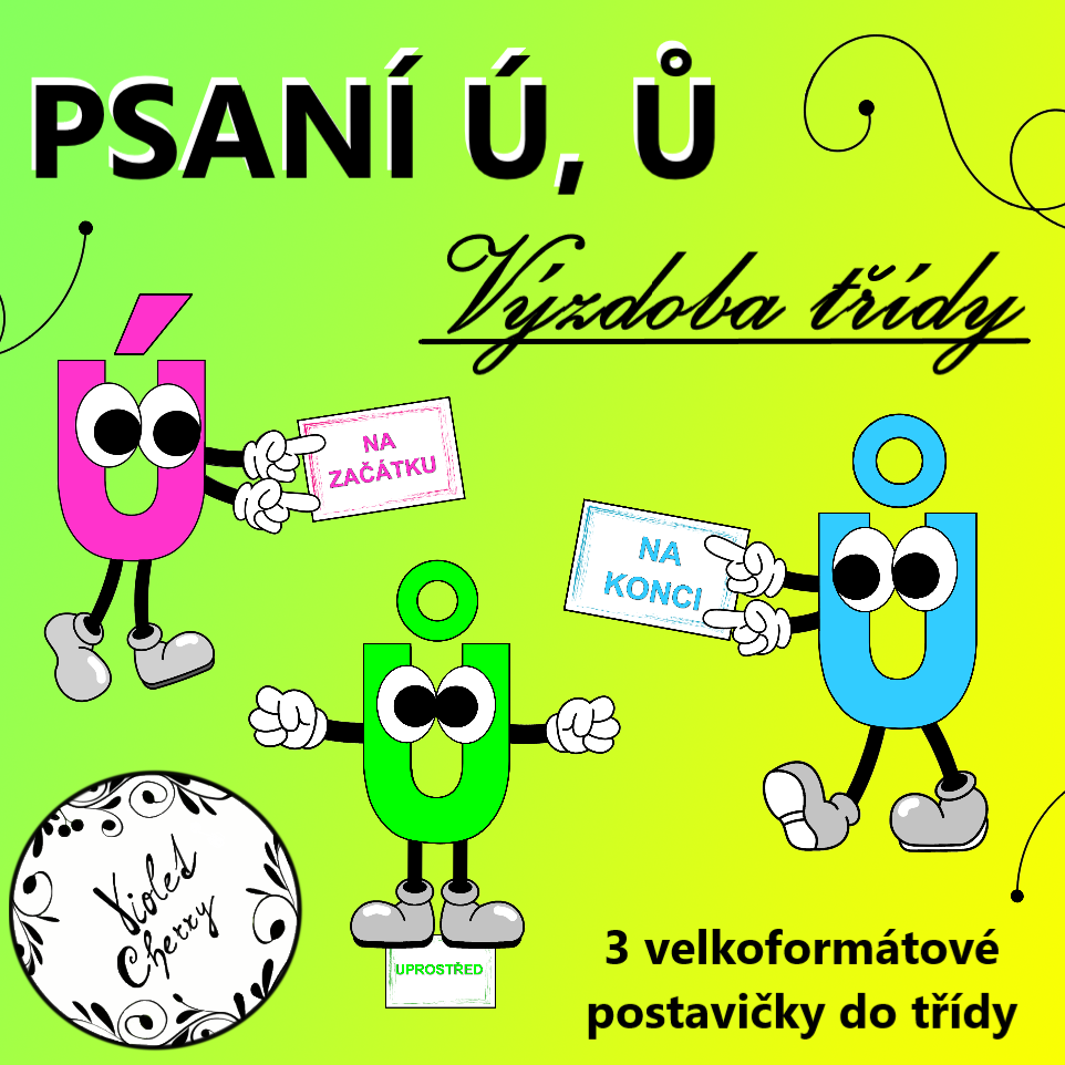 Velkoformátové panáčky ve tvaru "Ú" a "Ů", jejichž nohy, ruce, ale i oči žákům připomenou, kde se dané U píše. A kdo chce, může si je doplnit i barevnými cedulkami s popisem. Jsou opravdu velcí, tak pozor, až je budete věšet, potřebují hooodně místa :-)
