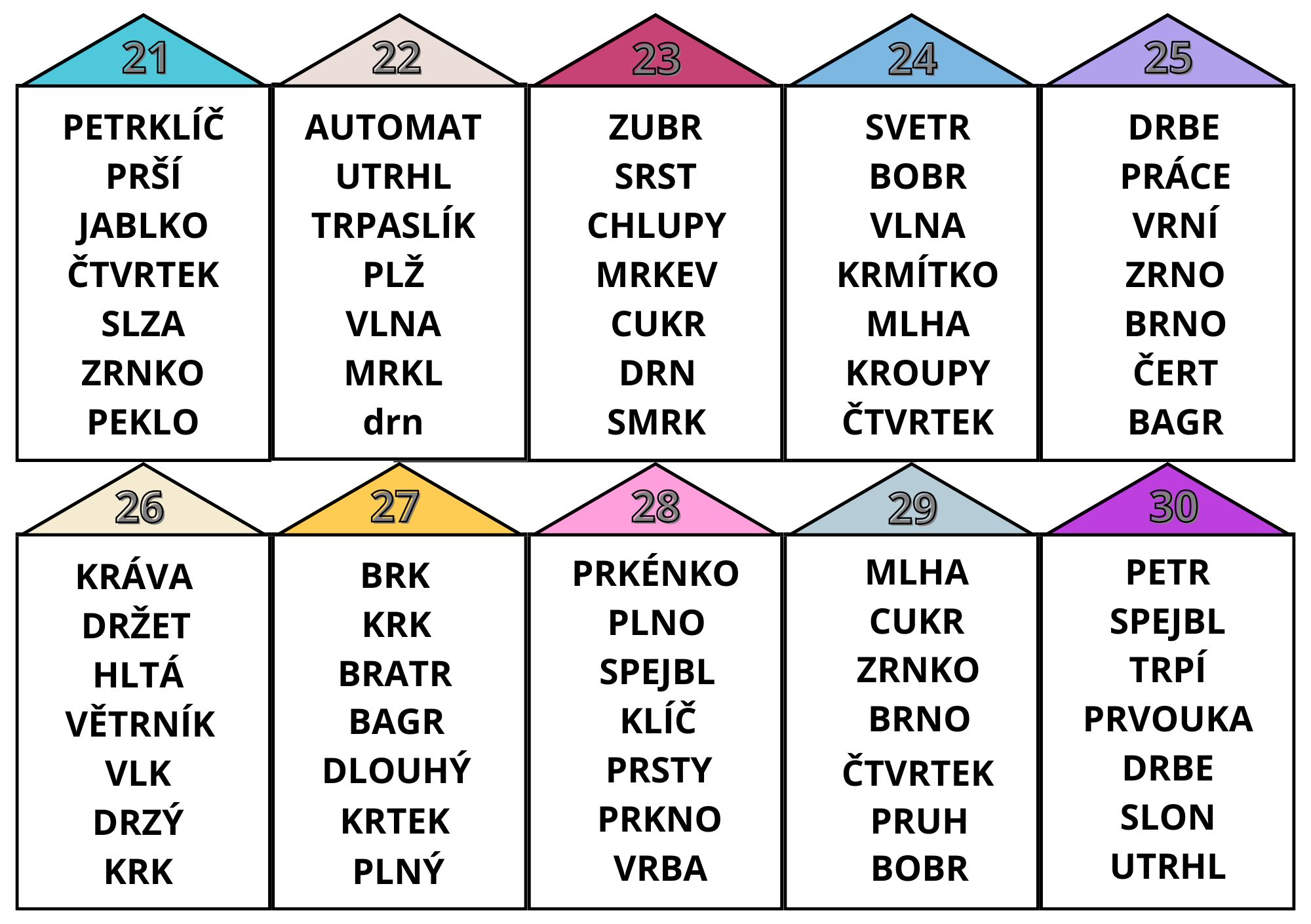 - 30 kartiček se slovy - vyhledávání jednoho, které tam nepatří