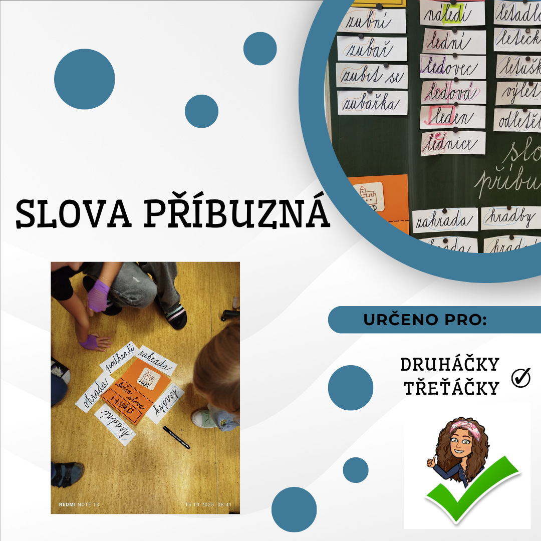 Materiál je zaměřen na procvičení a upevnění učiva o slovech příbuzných a kořeni slova. Žáci pracují aktivně – losují si slova, podle významu vytvářejí skupiny slov, společně hledají jejich společnou část (kořen) a rozšiřují „rodinu“ slov o další příklady. Aktivita podporuje porozumění významu slov, samostatné myšlení i spolupráci ve skupině.