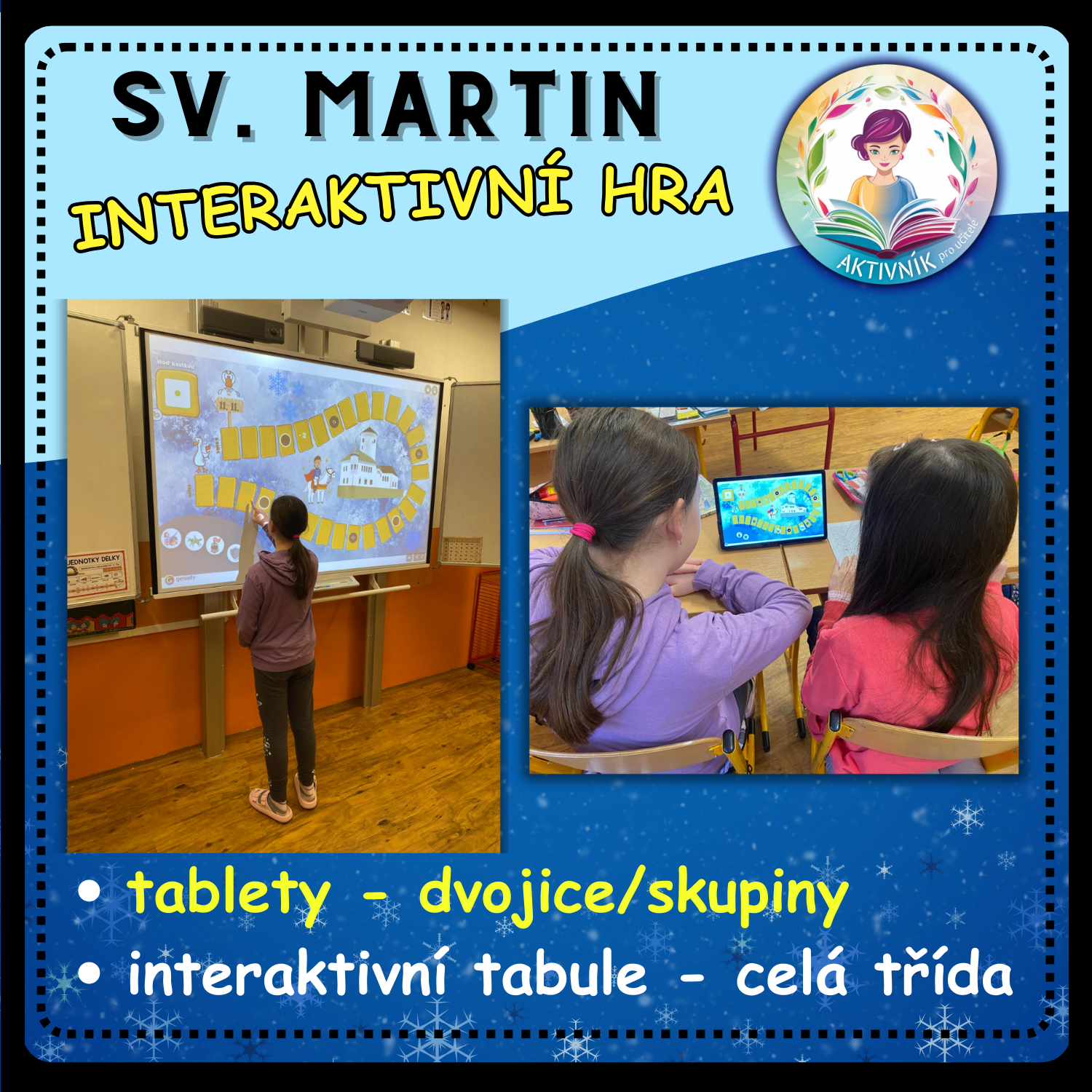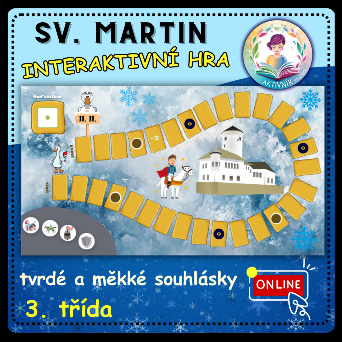 Pro interaktivní tabule (hraje celá třída) i tablety (dvojice/skupiny). Opakování tvrdých a měkkých souhlásek zábavnou formou. Obsahuje řešení = okamžitá zpětná vazba. Obsahuje také pohybové chvilky. Hra je celá pouze online. Po dokončení hry se objeví překvapení ve formě písničky o sv. Martinovi. Lze propojit s HV.