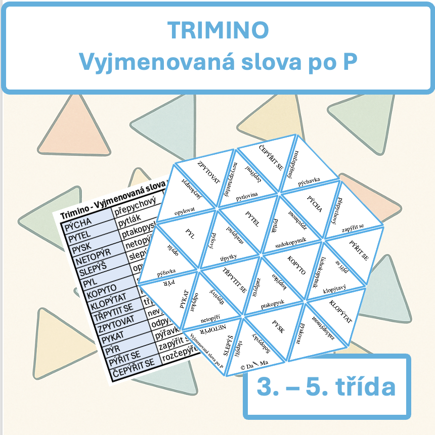 Tato didaktická aktivita rozvíjí porozumění vyjmenovaným slovům prostřednictvím praktického procvičování. Žáci si nejen upevňují znalosti vyjmenovaných slov, ale zároveň si procvičují kořen slova a k němu slova příbuzná. Hra cvičí pozornost, logiku, soustředěnost a slovní zásobu.