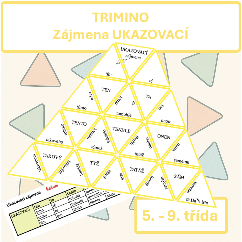 Didaktická hra rozvíjí porozumění zájmenům a jejich tvarům prostřednictvím praktického procvičování. Žáci si upevňují znalosti druhu zájmen, zároveň si procvičují jejich tvary. Hra cvičí pozornost, logiku, soustředěnost, slovní zásobu.