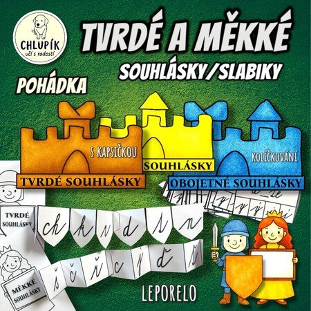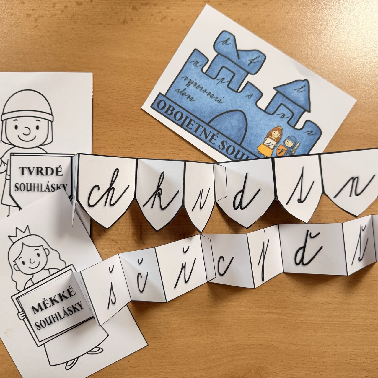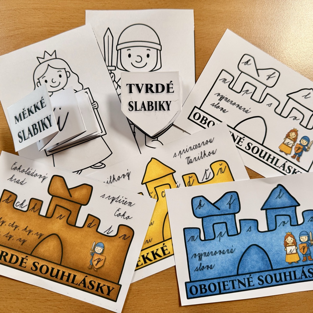 – 108 kartiček na procvičování měkkých a tvrdých slabik (kolíčkování),