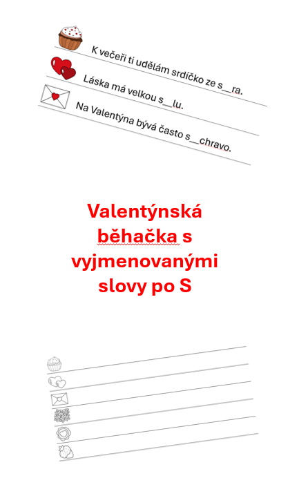 Valentýnská běhačka je pohybová aktivita zaměřená na procvičování vyjmenovaných slov a doplňování i/í, y/ý po obojetných souhláskách. Aktivita je laděna do valentýnského tématu.