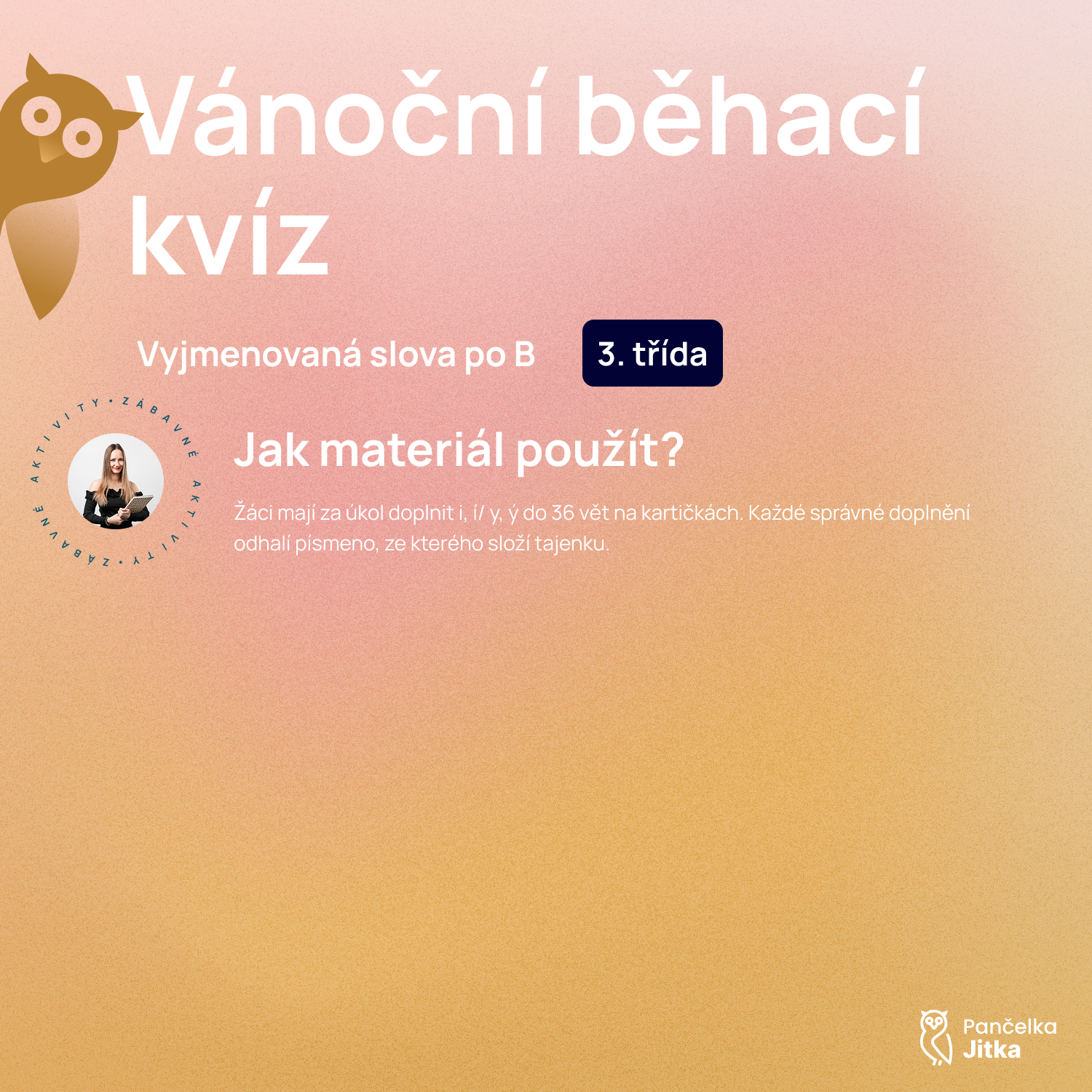 Procvičte s žáky vyjmenovaná slova po B pomocí vánočního běhacího kvízu, ve kterém najdete 36 kartiček, kde je potřeba doplnit y, ý / i, í do vět s vánoční tematikou.