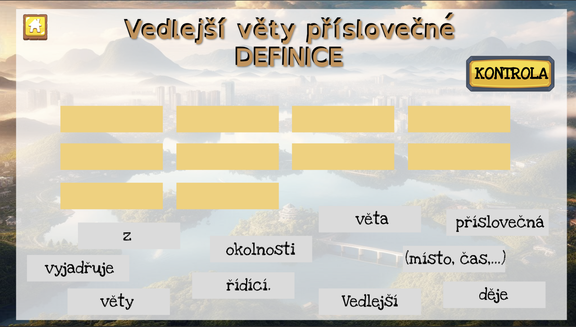 - definice - hráč přetahuje slova do věty tak, aby vznikla správná definice VV