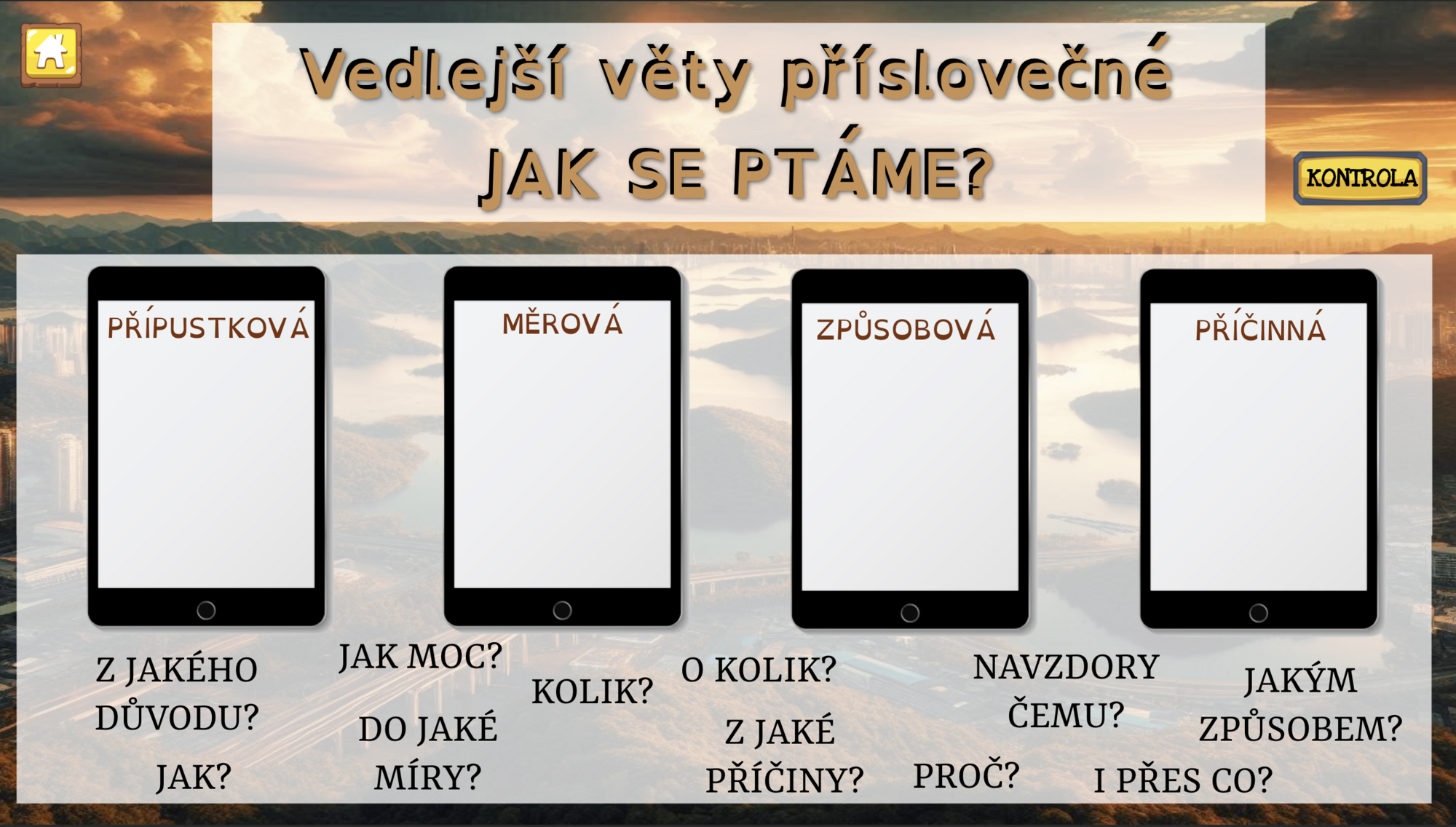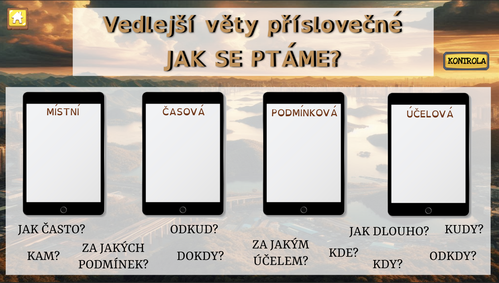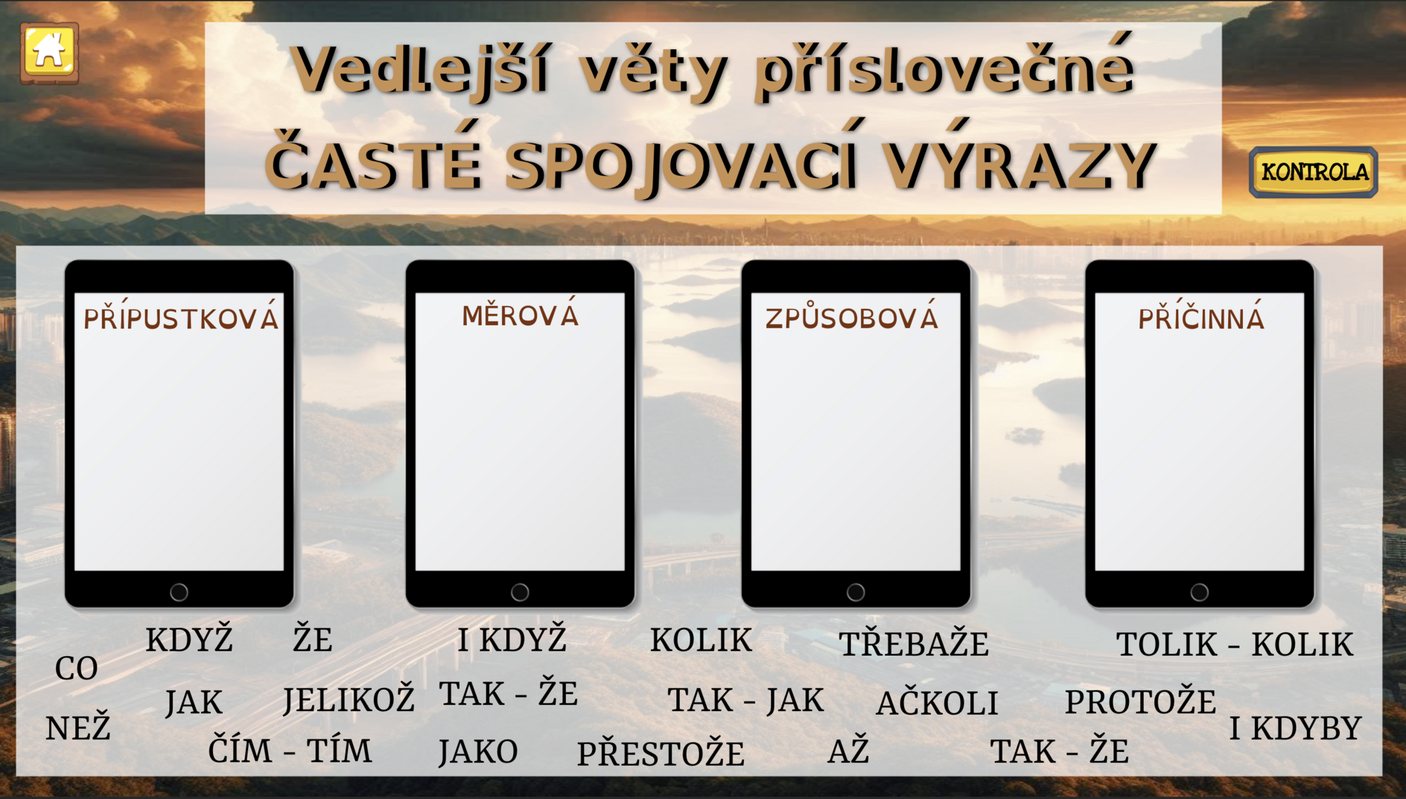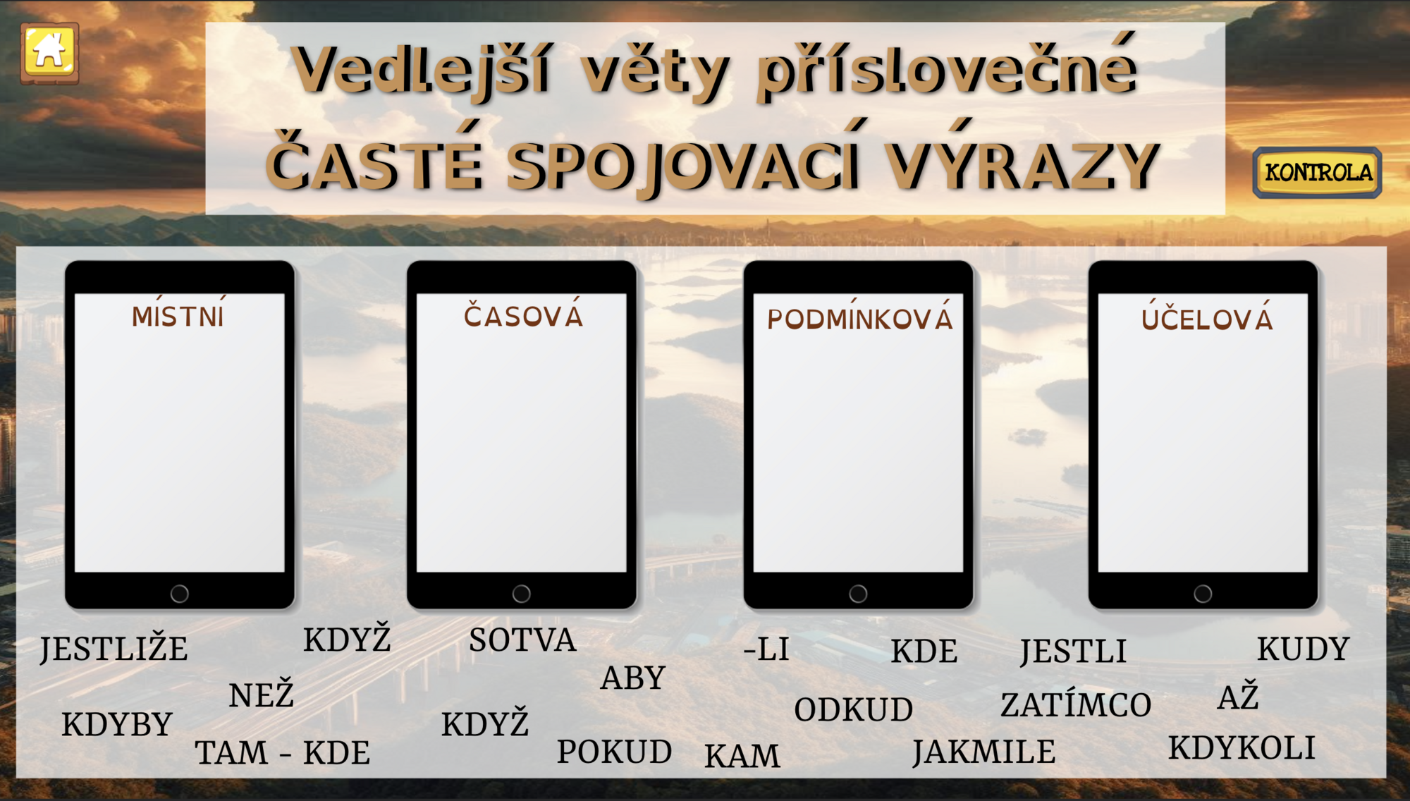- časté spojovací výrazy - hráč přesouvá výrazy do správných kategorií